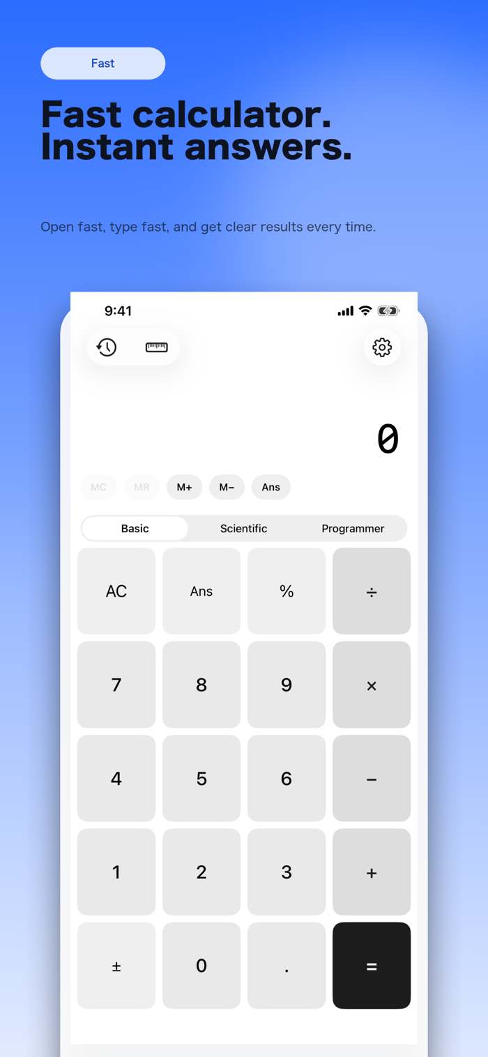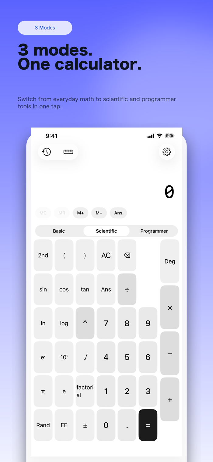 It is built for quick everyday math, then gives you more the moment you need it: scientific tools, unit conversion, history, and a layout that feels right on both iPhone and iPad.