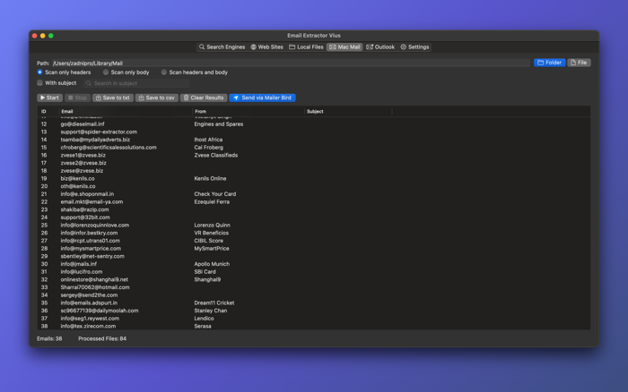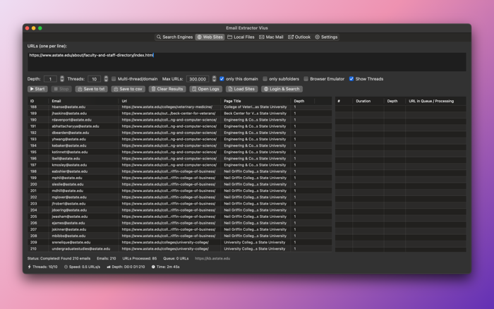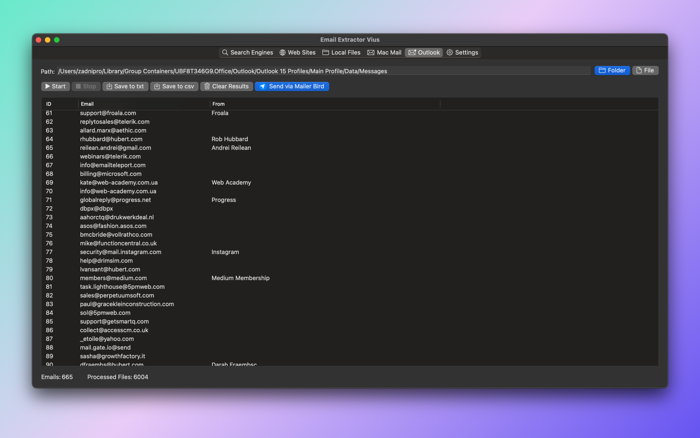 Email Extractor Vius - easy tool for collecting email addresses from local files and web pages.