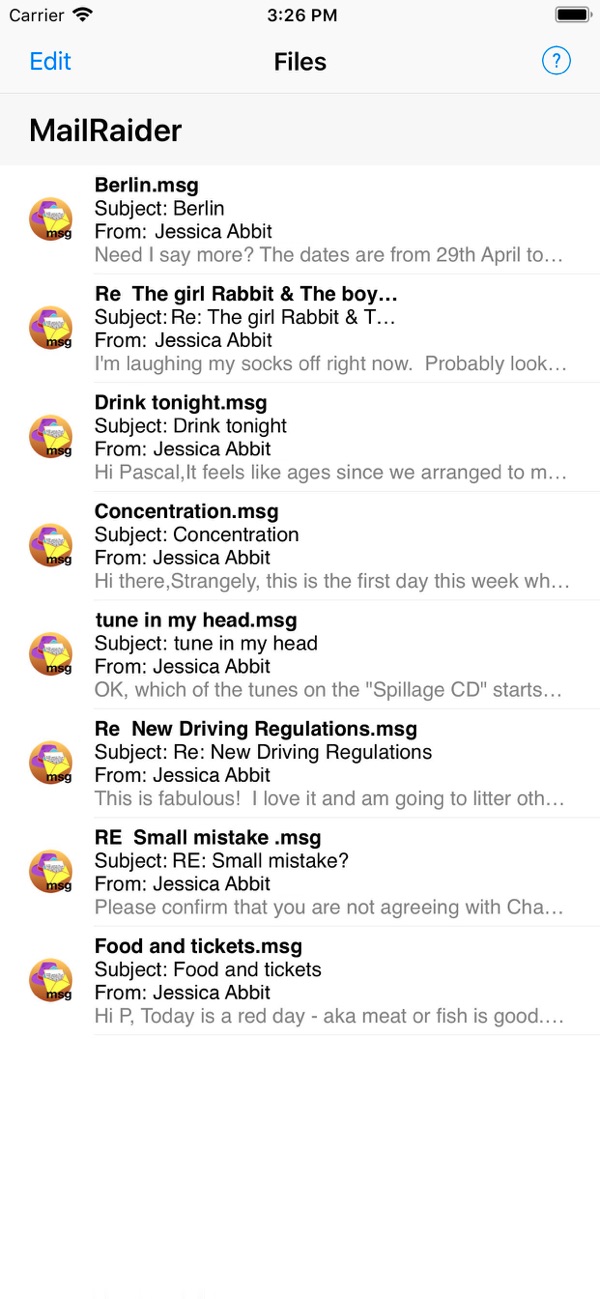 MailRaider for iOS延续macOS畅销版,提供优质支持,无隐藏费用。其界面经视网膜显示屏优化,支持.msg、.oft、winmail.dat、.email等多种邮件格式,可将联系人与约会导出为.ics、.vcf,还能在应用内预览附件文件,支持兼容iPad的多任务处理,包括分屏等。