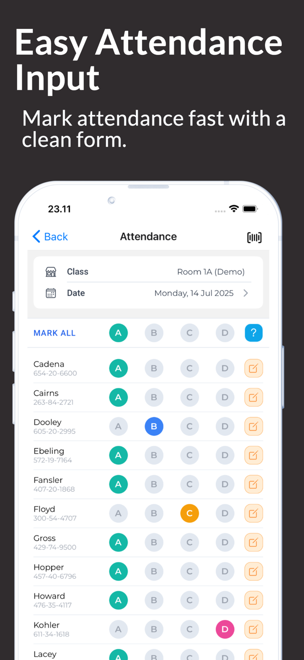 InClass专为教师打造,能轻松管理学生考勤。其界面直观,可简化跟踪学生出勤、记录成绩及生成详细报告流程,让教师有更多时间教学。核心功能包括:轻松考勤跟踪,几 taps 即可记录监测;综合班级管理,集中保存班级学生详细信息;精准评分系统,简化评分流程;可生成出勤和成绩详细报告以有效监测学生进度;有条形码扫描仪快速准确考勤;还能创建下载学生身份证。