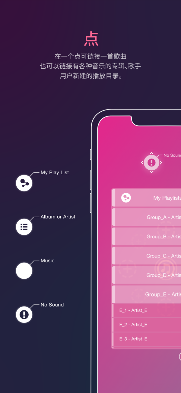 DotPlayer是互动播放音乐应用程序,可按链接音乐各点位置和距离选定播放顺序。一个点能链接一首歌曲、专辑等,通过简单操作在播放目录上添加或删除,还能随时更改播放控制器位置和范围。它需通过iTunes同步机器内音乐信息,有生成My Playlist、设置睡眠定时器、支持设备旋转、快速隐藏显示UI、背景播放等功能,还有内购升级可解除限制生成点和My Playlist等。