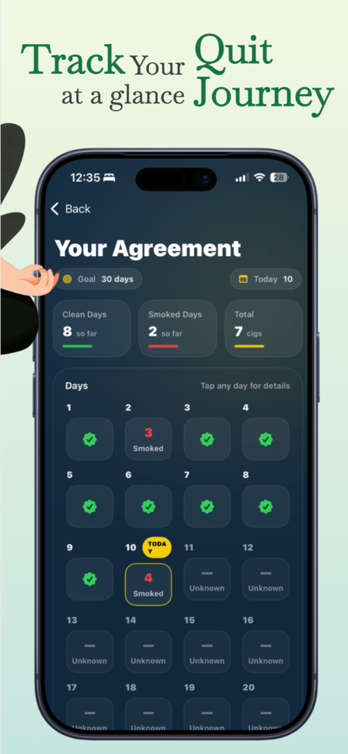 - 精准记录:准确记录您的吸烟量,了解您的吸烟习惯。这些数据对于任何想要戒烟并重获掌控权的人来说都至关重要。