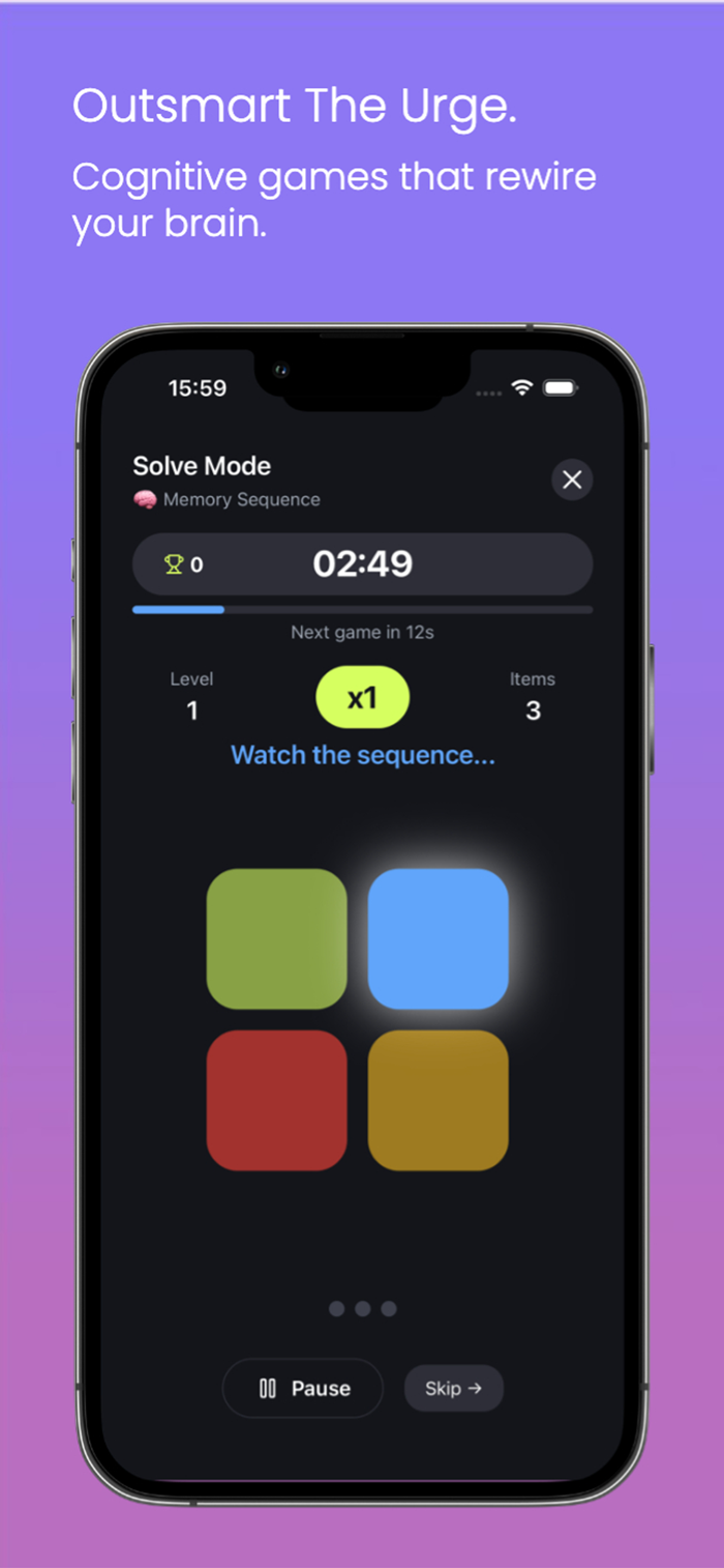 • Solve Mode – Engaging cognitive games that redirect your focus