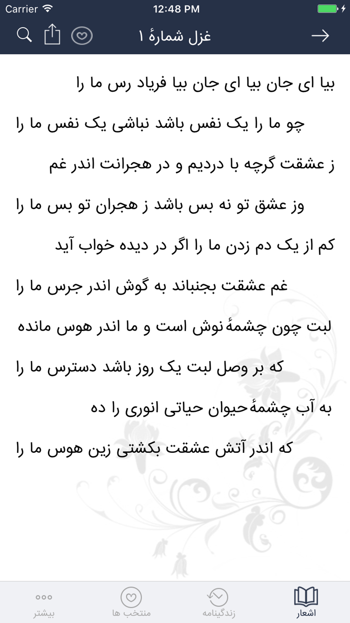 - شعرهای مورد علاقه ی خود را میتوانید درقسمت «اشعار دلخواه» ثبت کنید