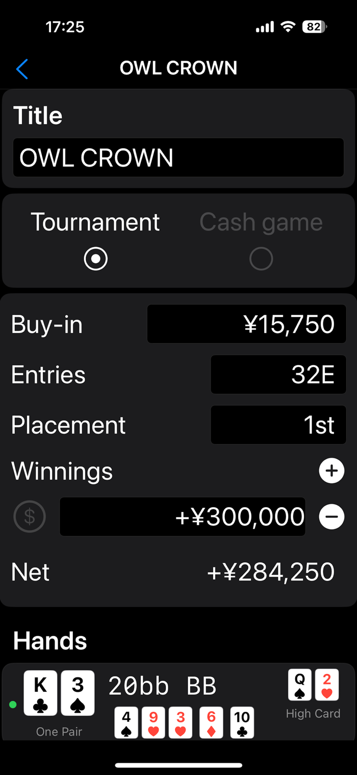 ポーカーのトーナメント・キャッシュゲームを、あとから振り返りやすい形で記録できる日誌アプリです。