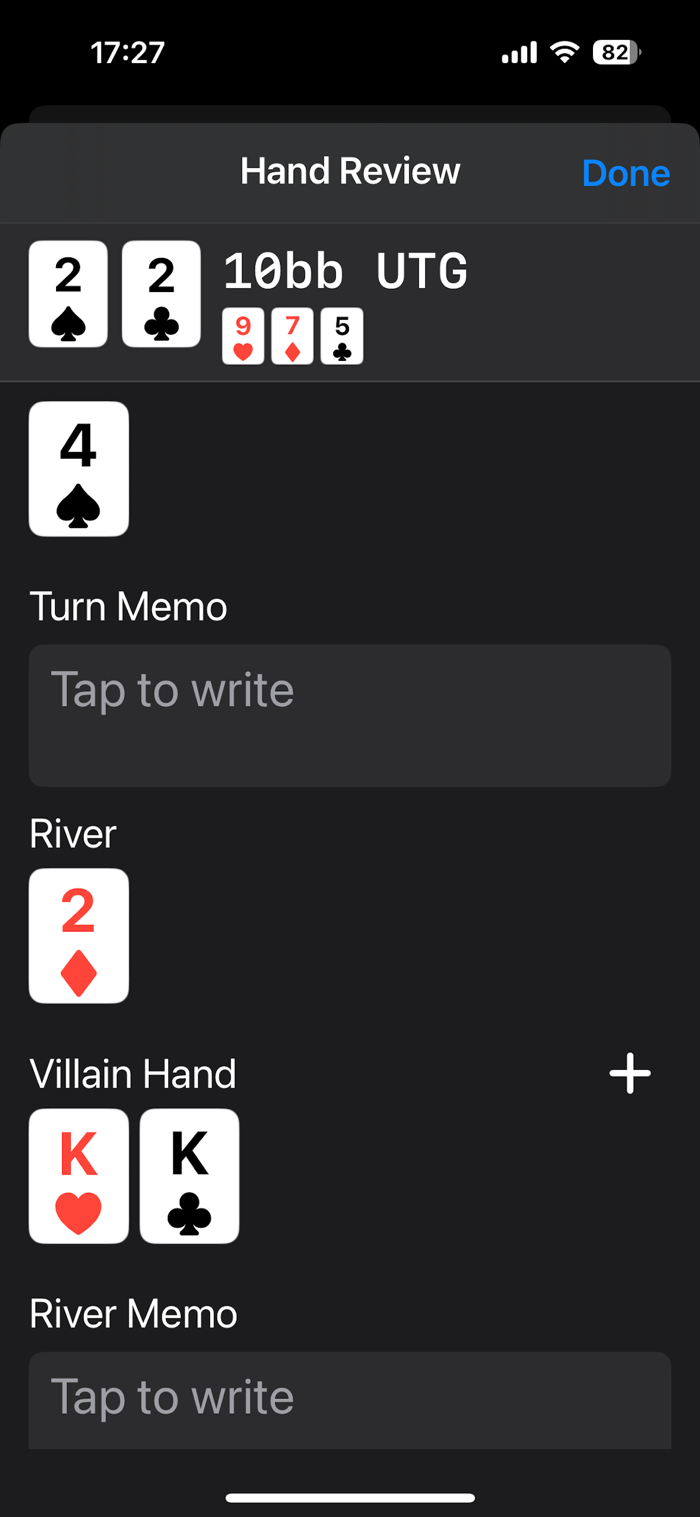 ・プリフロップ〜リバーまでストリートごとにメモを書いて、後から詳細なレビューが可能