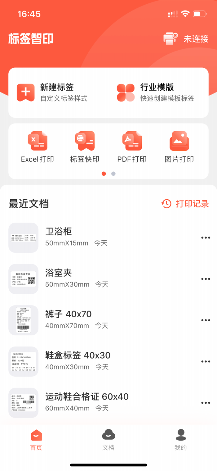 该产品支持多种主流品牌打印机连接打印,拥有简洁的标签编辑设计页面,具备多种打印场景高效打印功能,还有便捷高效的文档管理页面,提供丰富的标签行业素材选择,能实现高效编辑,让打印无忧。