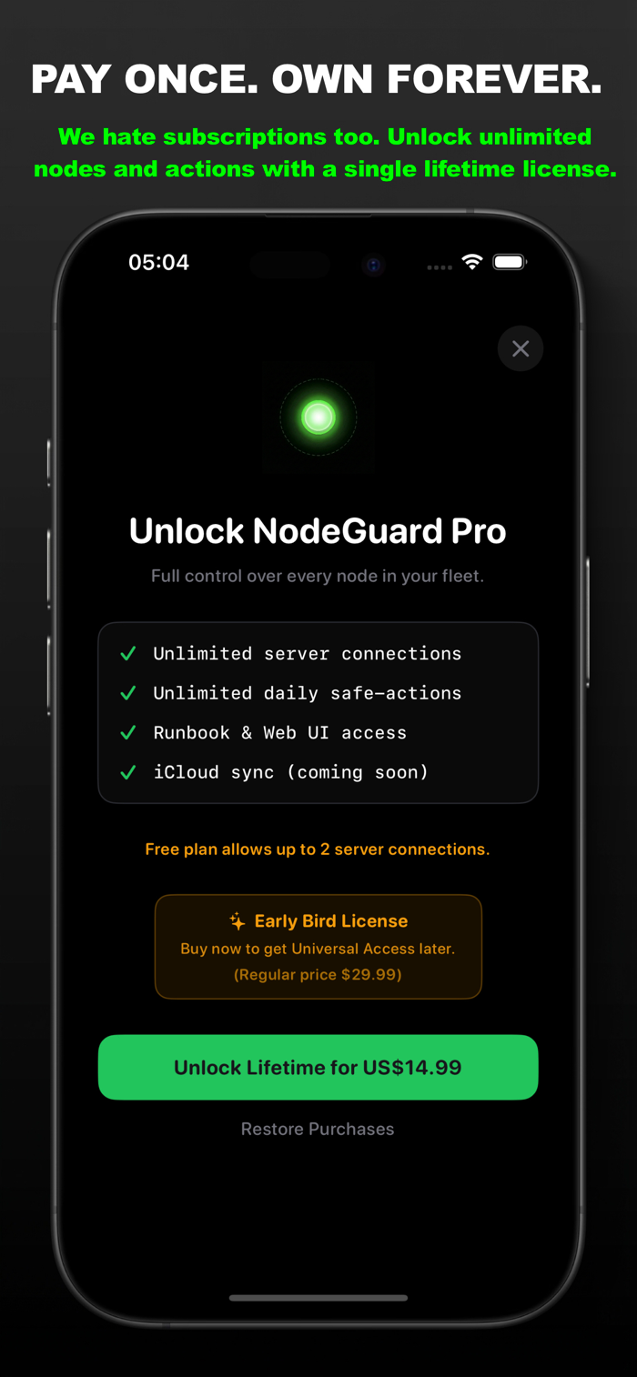 NodeGuard是专为家庭实验室爱好者、系统管理员和独立开发者打造的极简、无代理监控及应急远程工具。无需臃肿界面、账户及订阅。其功能包括:美观原生、OLED优化的仪表盘,可一览节点健康、CPU和RAM;通过“滑动确认”快速重启服务器、重启容器或运行应急脚本;实时读取颜色编码、正则解析的日志片段辅助诊断,且零云且安全。
