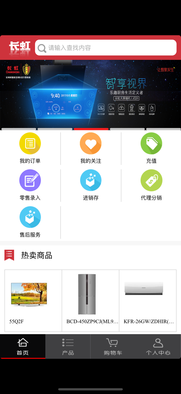 长虹 B2B 电子商务平台是为 B 端用户提供的综合服务平台,涵盖订单、货款、售后等业务。移动端功能让用户随时随地处理业务,主页面可查热卖与销售概况,产品列表菜单方便查看产品详情。主要功能有购物车、收藏夹、下单结算等,个人中心能查看可用余额、付款明细等,助力 B 端用户高效管理业务。