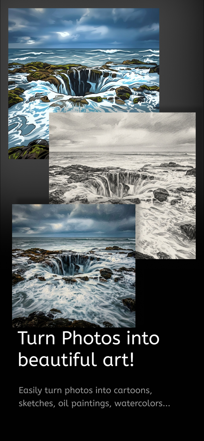 • Stylize your photos: cartoons, illustrations, artistic looks, and more