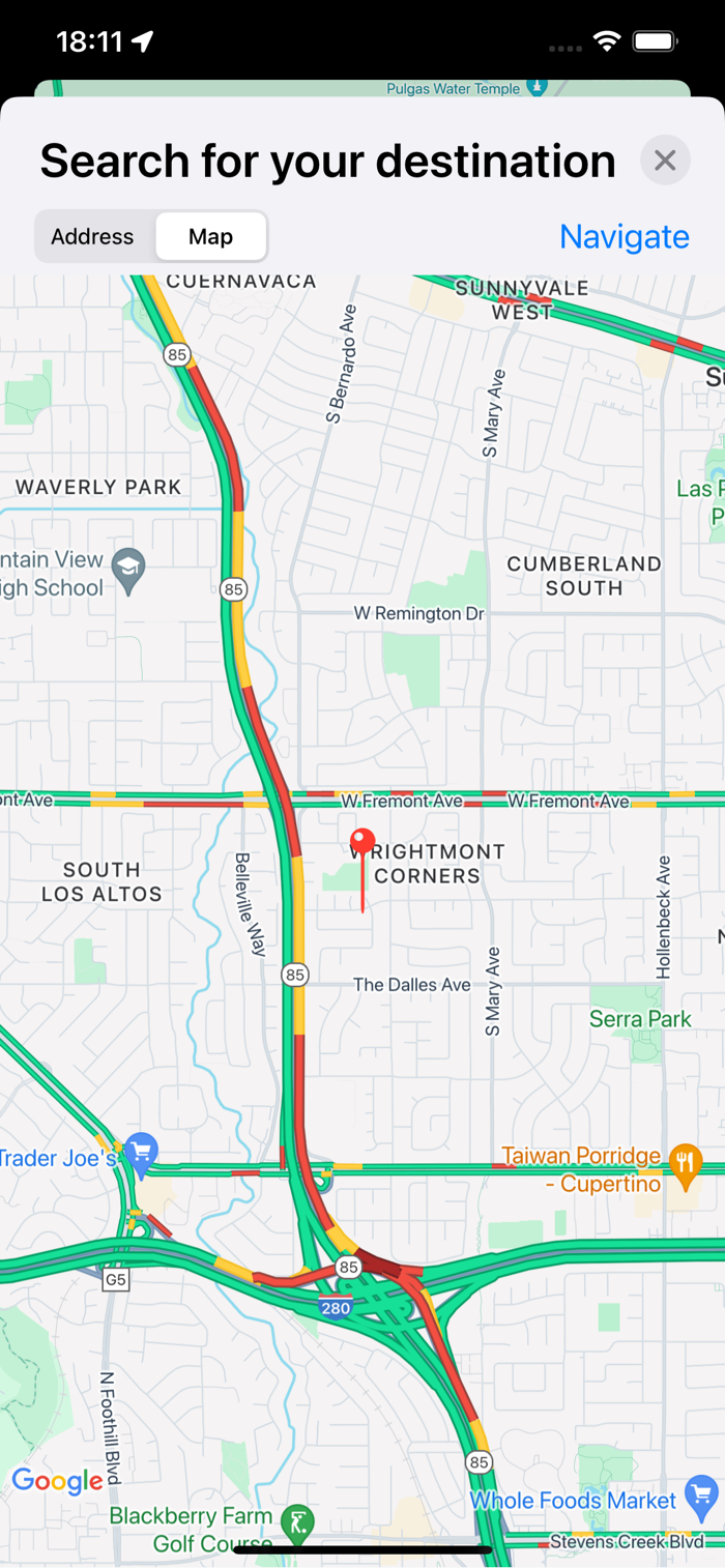 - Map with real time traffic or view with no map, only with the speedometer