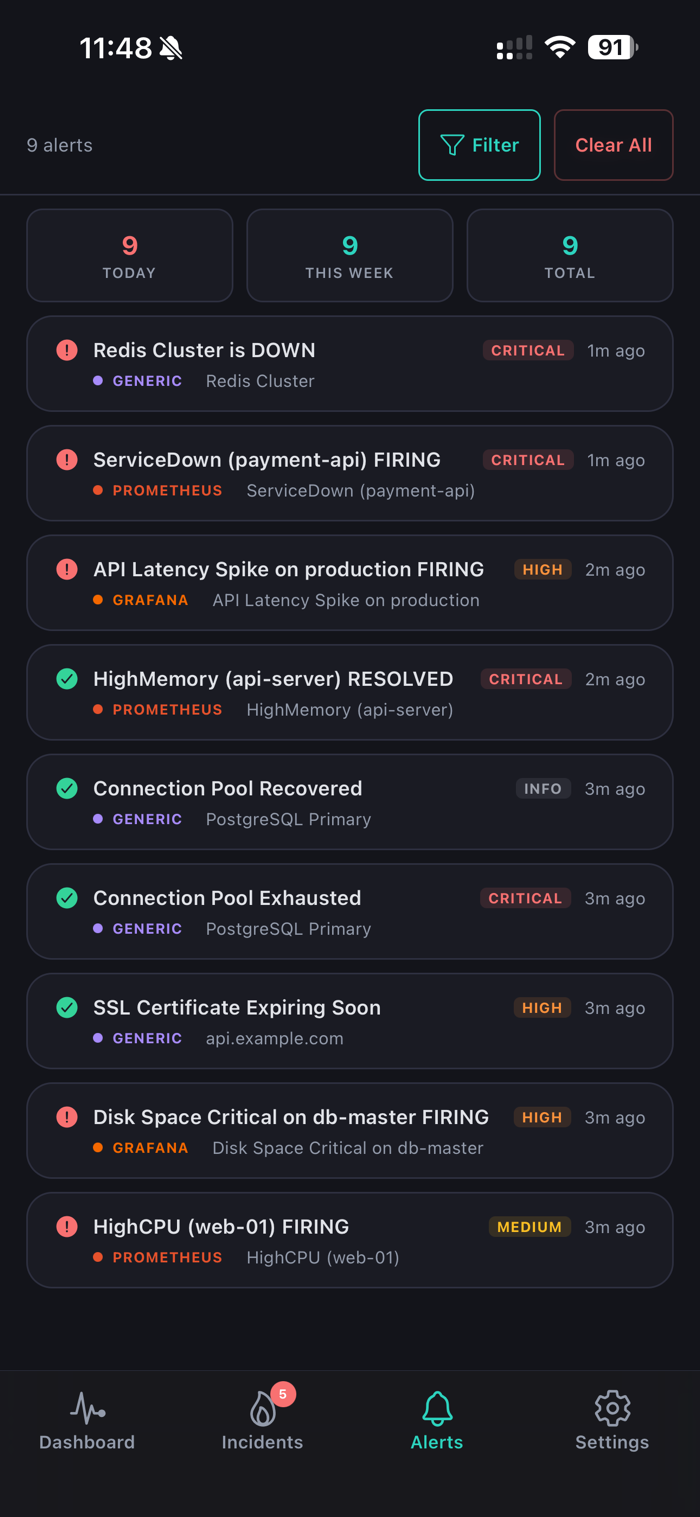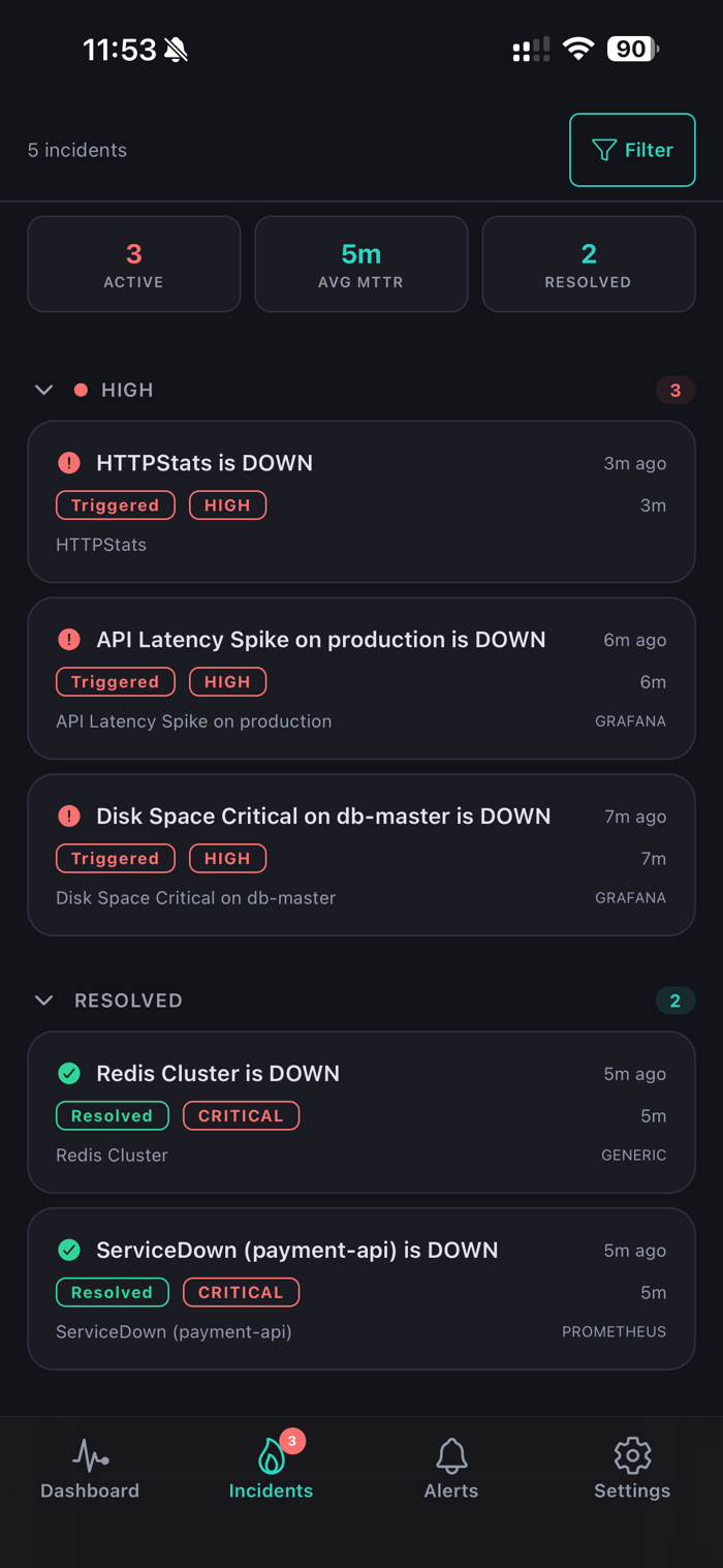 Connect Uptime Kuma, UptimeRobot, Healthchecks.io, StatusCake, Better Stack, HetrixTools, and Gatus. See all your monitors from every source in a single unified dashboard. No other mobile app does this.