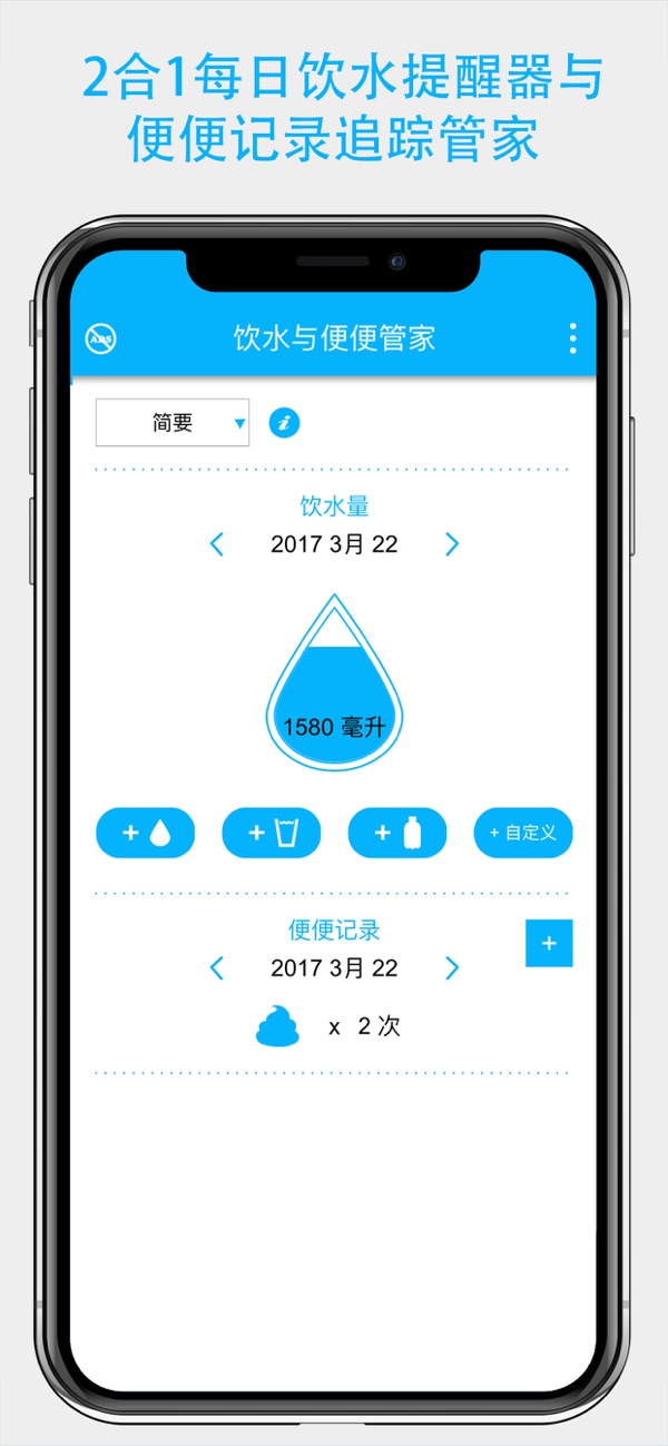 这款APP是集喝水提醒与便便记录功能于一体的健康小帮手。操作简单,能帮您改善不健康习惯。它界面简洁友好,可快速上手,轻松掌握饮水量与便便次数。喝水提醒设置简单,还有贴心推播通知。能智能排序记录,提供自定义饮水量快捷键、多种测量单位选择,专业版有智能报告及导入导出备份功能,支持多语言,可在iPhone、iPad和iPod Touch下载。