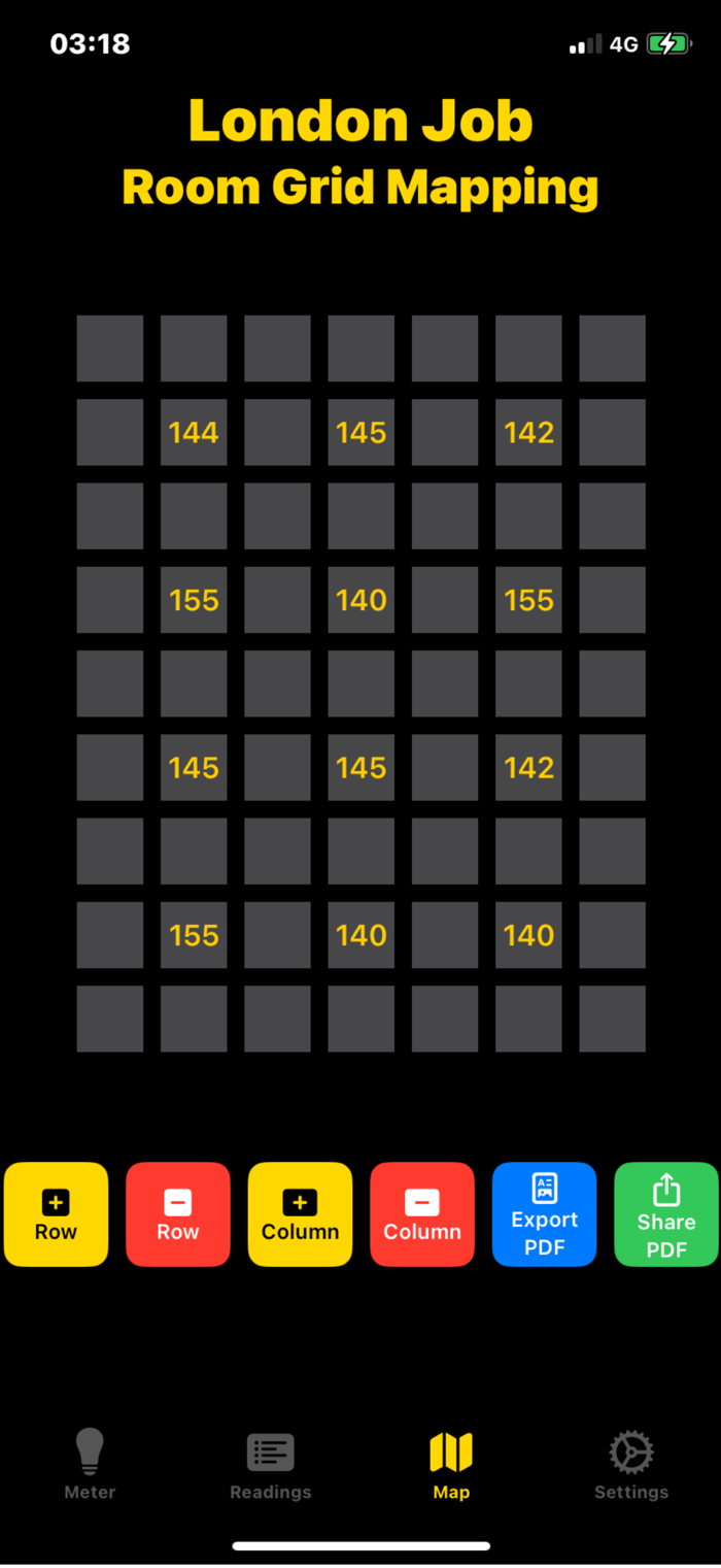 Compare readings over time for any location. Track whether lighting conditions have changed between inspections.