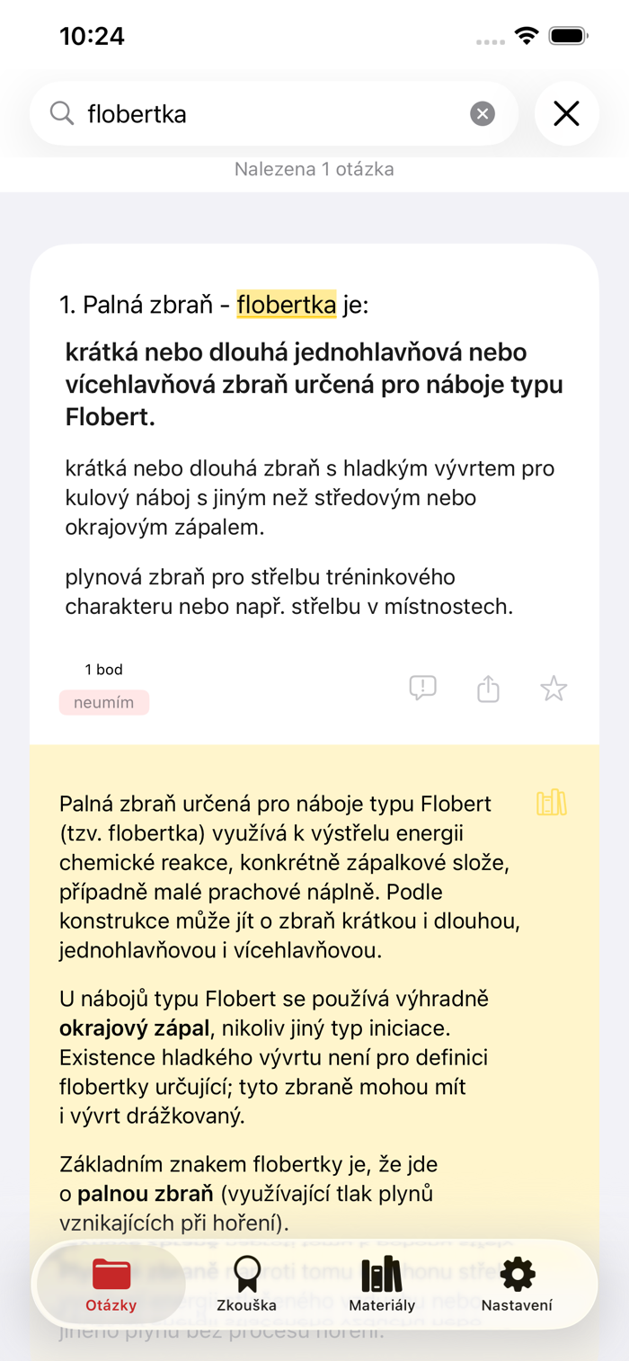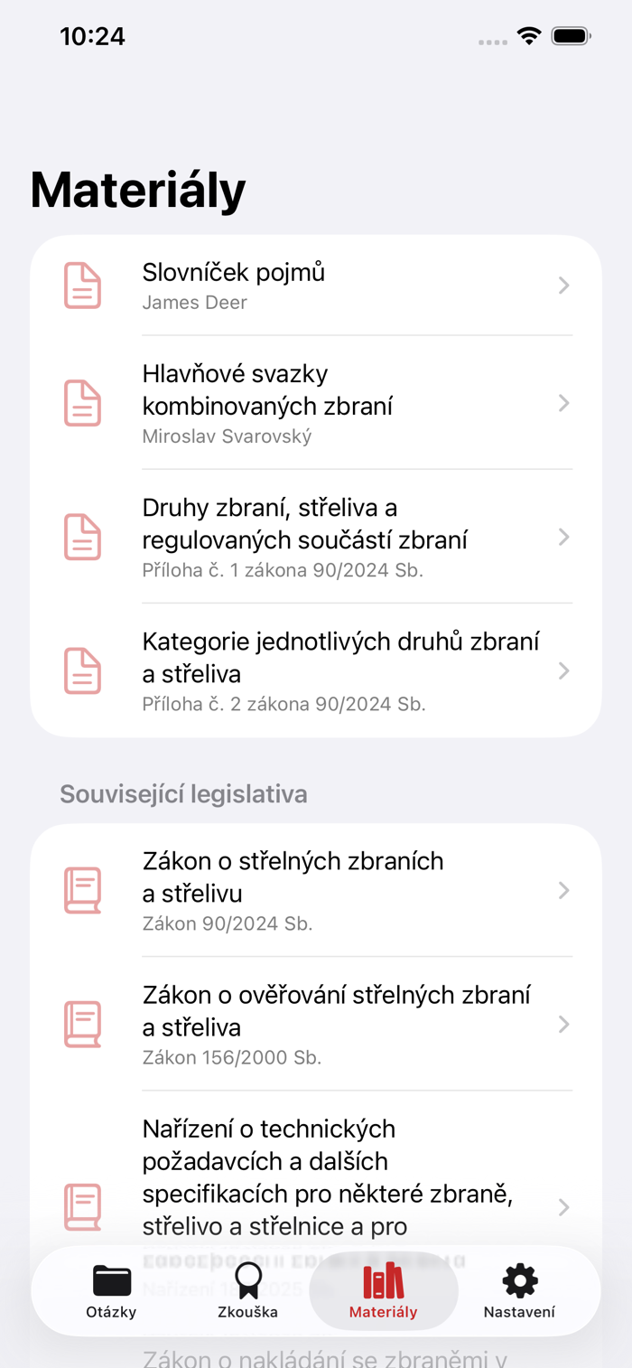 Aplikace Zbrojní průkaz 2026 obsahuje otázky na zkoušku odborné způsobilosti žadatelů o vydání zbrojního oprávnění platné od 1. ledna 2026.