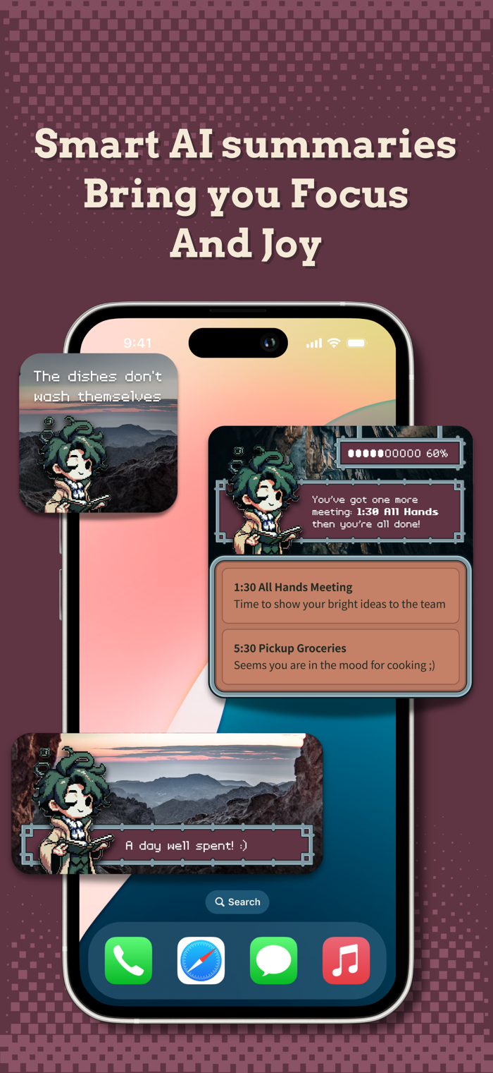 - AI Smart Summaries: Meetings, tasks, and events distilled to their essence (Who, What, Why). Plus, enjoy surprising, witty commentary generated by our empathetic AI – because your schedule deserves a little fun!