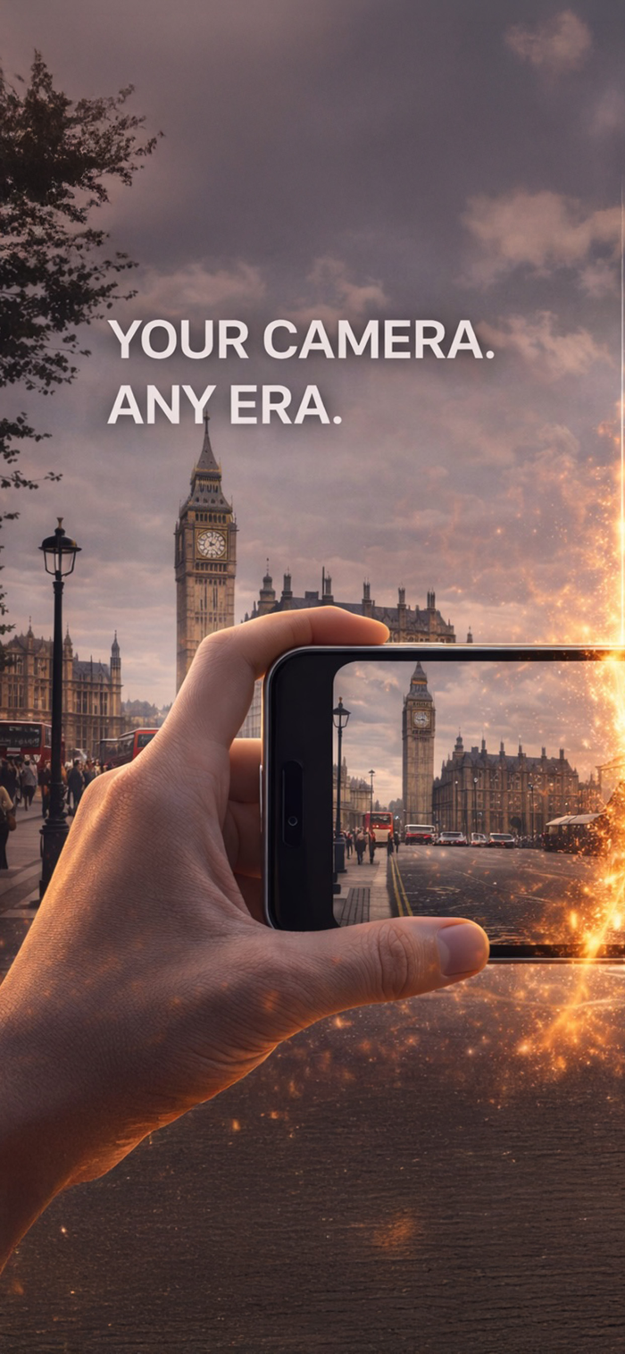 TimeCam lets you transform everyday photos into vivid moments from the past or imagined futures. Using advanced AI, TimeCam re-creates scenes as if they were captured in a different era - while preserving the original composition, people, and setting.