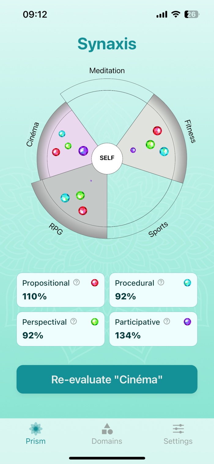 Through introspective questionnaires, the app offers a living map of your inner universe: a rosace that reveals your balances, contrasts, and deep dynamics.