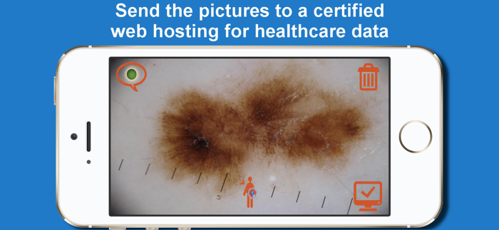 SkinApp移动应用是供皮肤科医生和医疗从业者使用的I类医疗设备,能在会诊时直观快速拍摄皮肤病变照片,便于跟踪患者会诊及检测病变演变,可离线使用,回办公室后再上传图片。能将图片与会诊关联、在人体地图定位、添加语音注释,还可通过iPhone或iTouch适配器与皮肤镜关联并校准了解病变大小,图片存储在认证的个人医疗数据网络托管平台,此应用不提供诊断,仅为SkinApp网络软件附件。