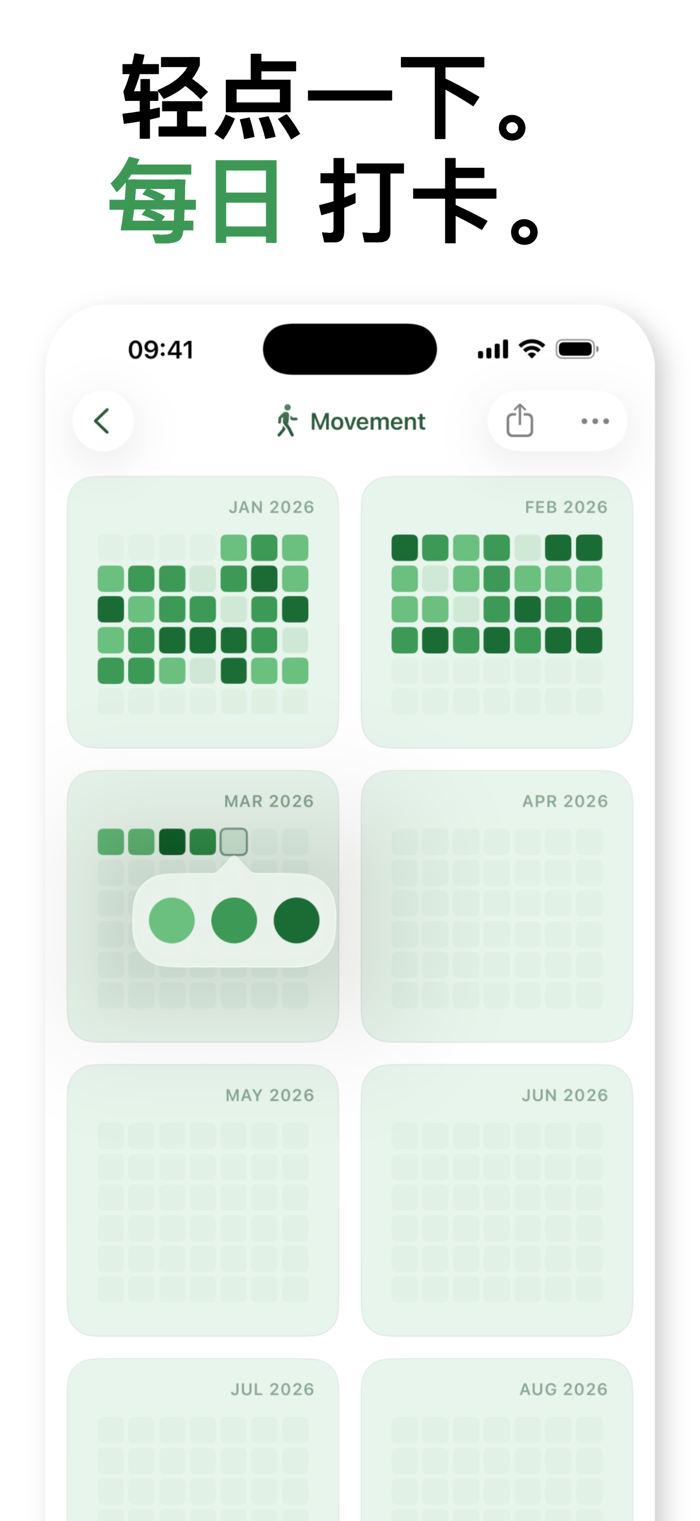 Tintle可记录心情、习惯和日常活动,每天用一个颜色呈现,形成精美的热力图,能按月、季或年查看。有31套调色板可选,无打卡压力,随时可开始记录。适合追踪里程碑,可自定义活动。能从9个模板选或自创,还可分享年度色彩。TINTLE PRO解锁全部功能,有月度和年度订阅,隐私优先,数据存于设备,无需注册账号。