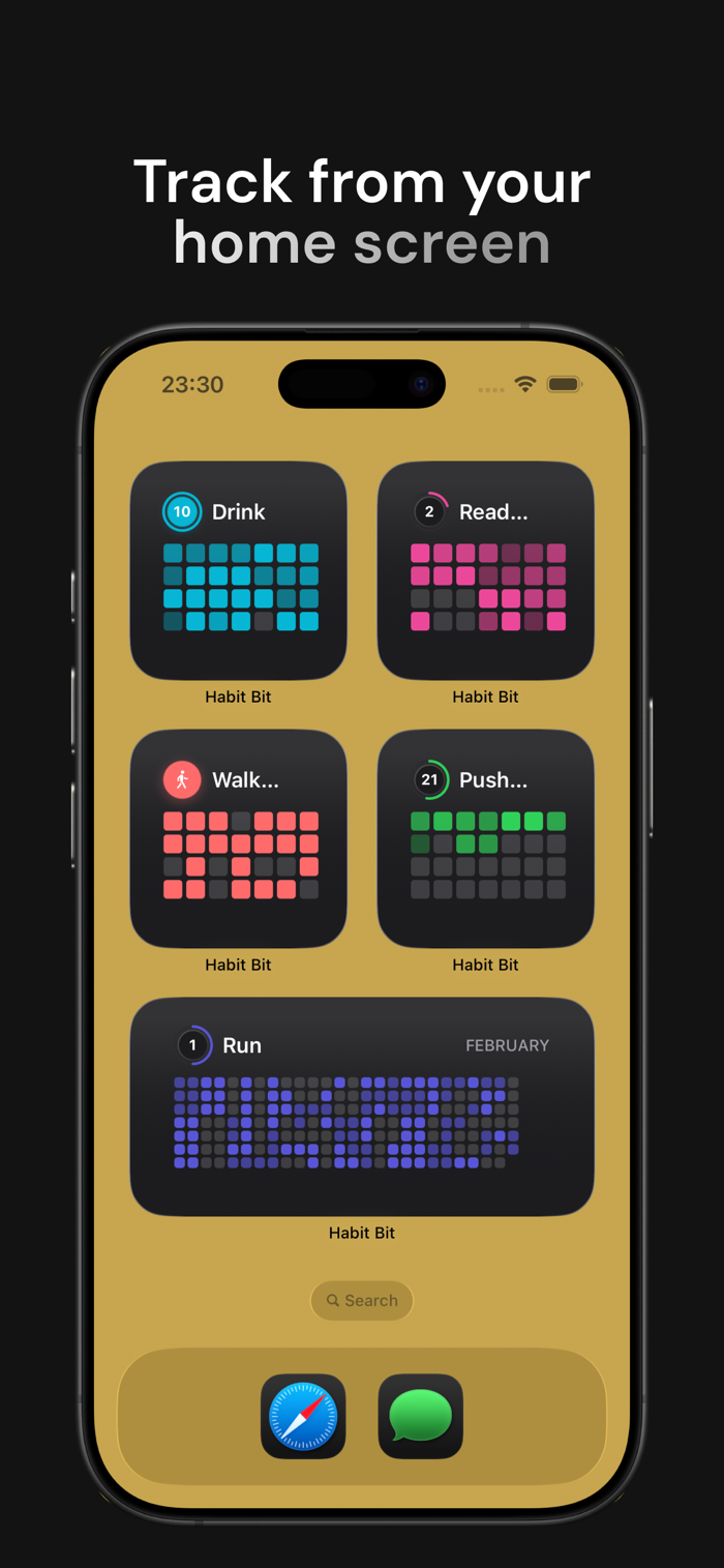 Complete habits directly from your home screen. No opening apps, no friction - just tap and done.