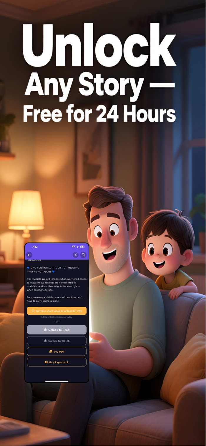 Watch a short reward video to unlock any featured story or activity for FREE for 24 hours. No payment needed.