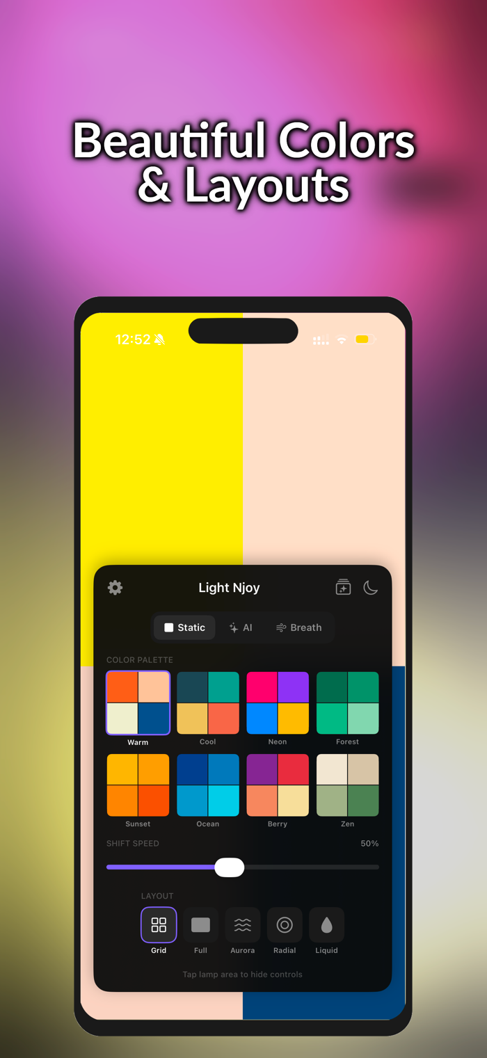• Auto Shift — Smooth color transitions that evolve over time
