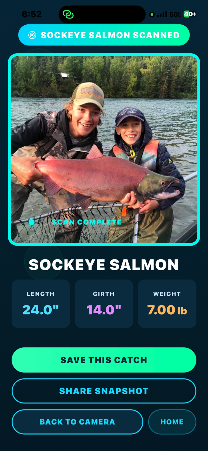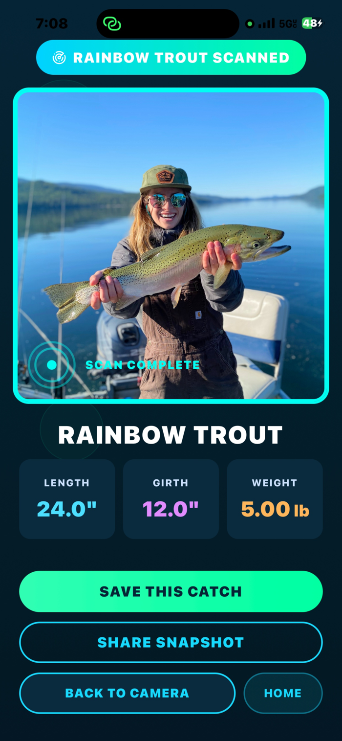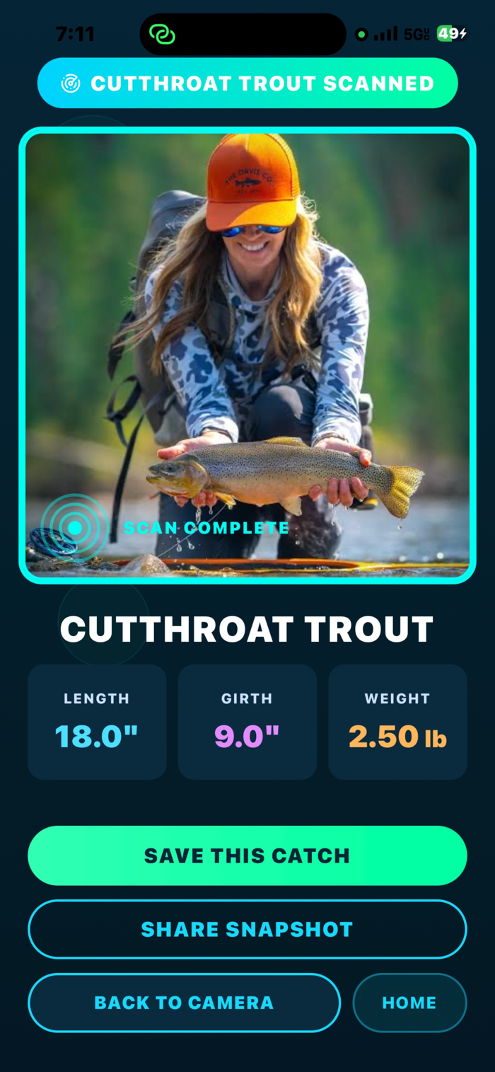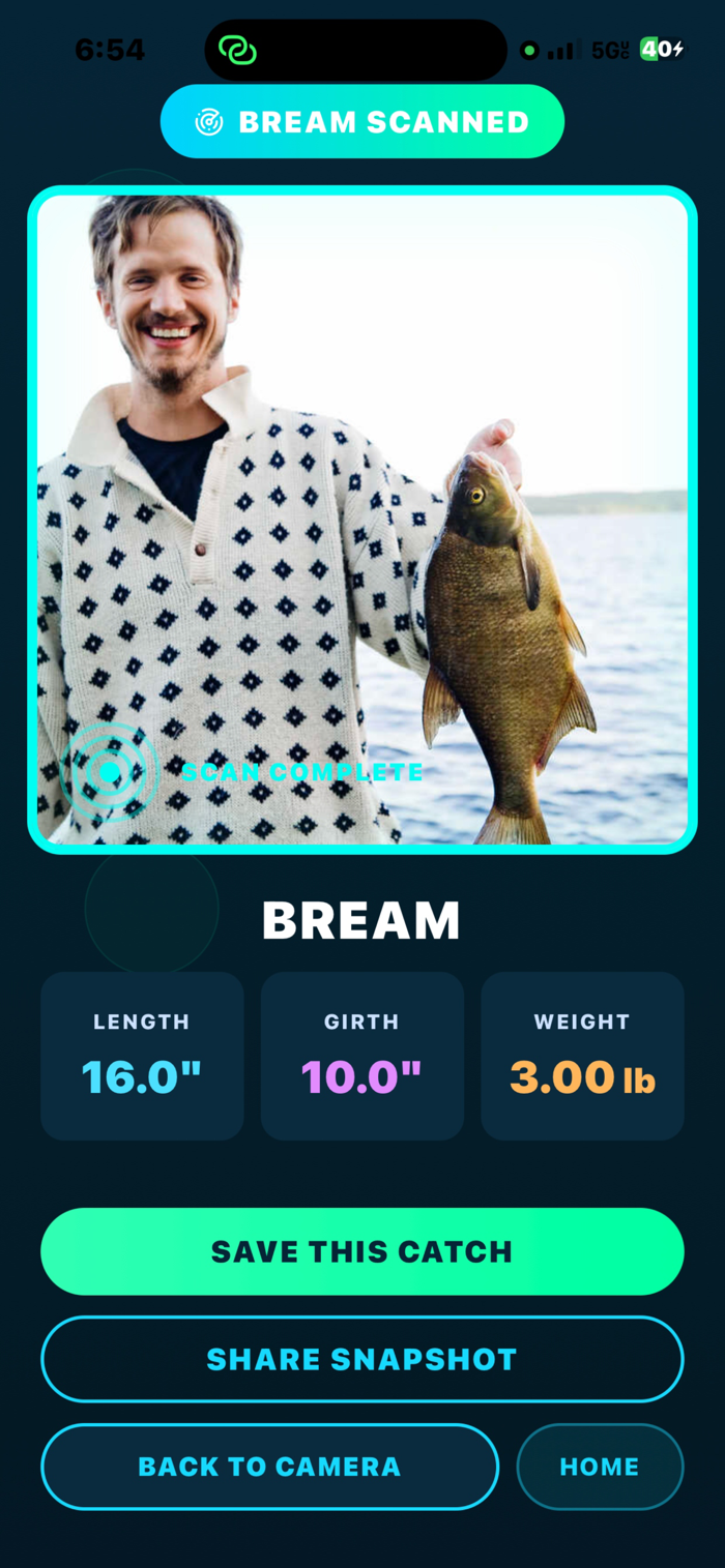 Fish Measure Pro uses a custom-built AI engine to measure and identify fish instantly from a photo. Our proprietary algorithms provide accurate length, girth, estimated weight, and species recognition in seconds for freshwater and saltwater species worldwide.