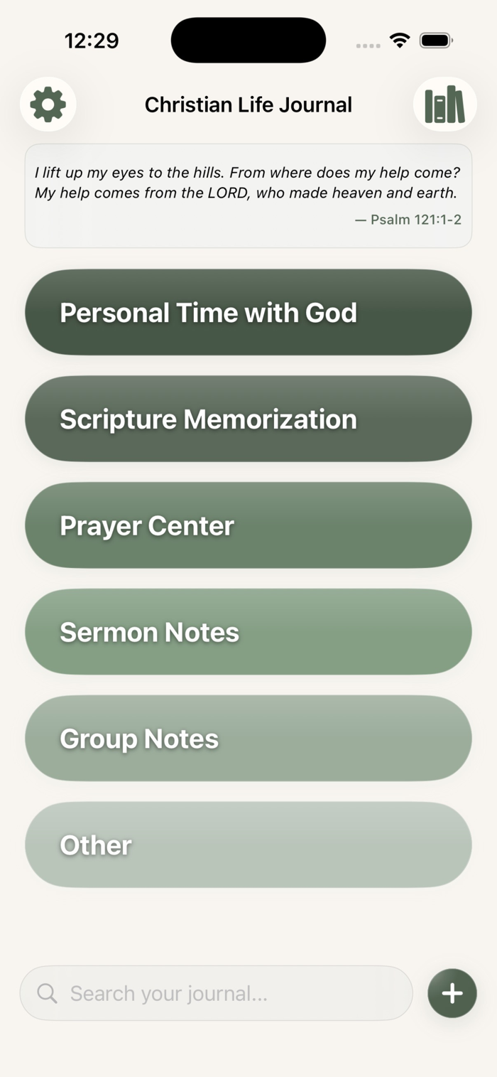 Welcome to your personal spiritual companion. Christian Life Journal is a thoughtfully designed app for deepening your faith through prayer, scripture study, and daily reflection.