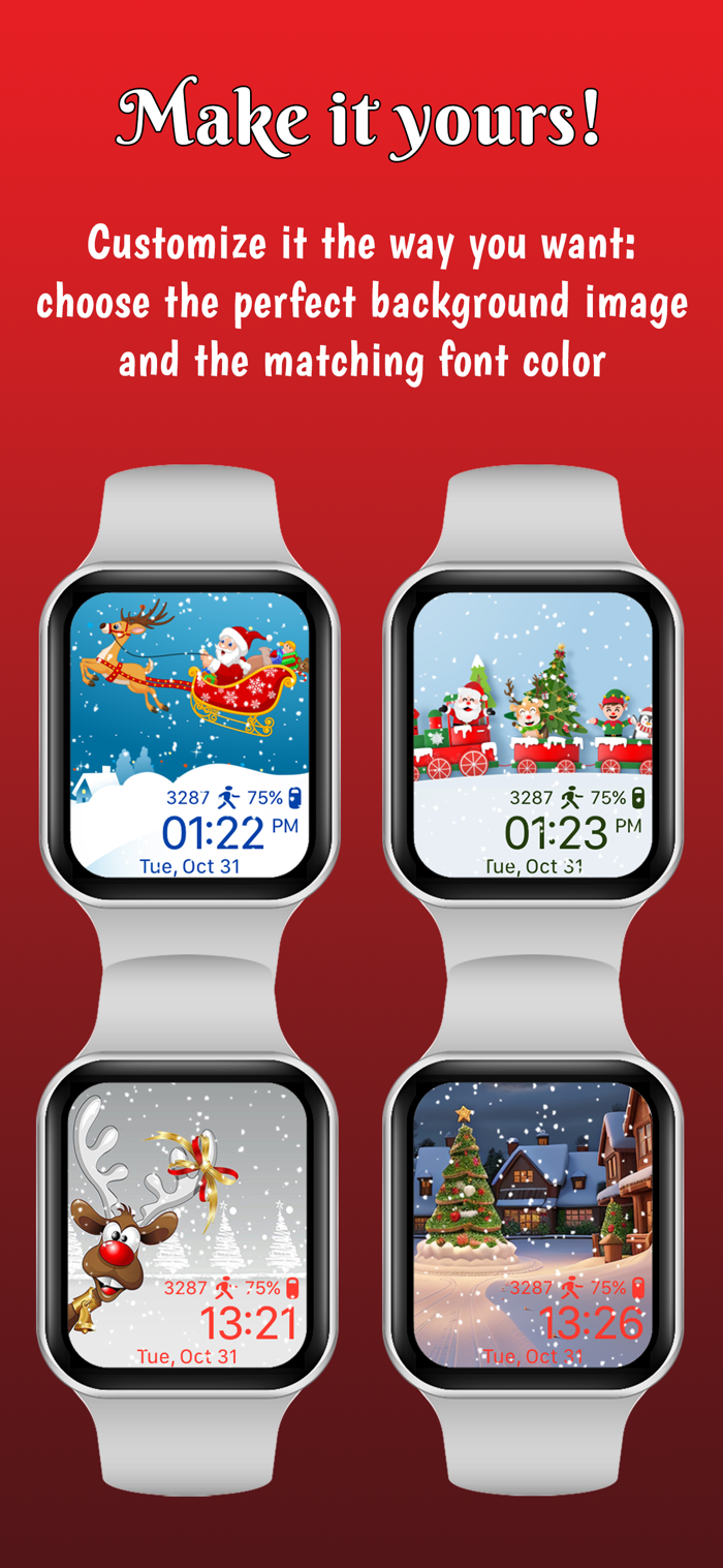 Indulge in the festive spirit with the "Santa Christmas Snowing" watch face, meticulously designed for Apple Watch running on Watch OS 10 or newer. Whether you're a fan of the jolly old Santa, his fleet-footed reindeer, or the quintessential Christmas charms, this watch face promises to deck your Apple Watch with holiday cheer!