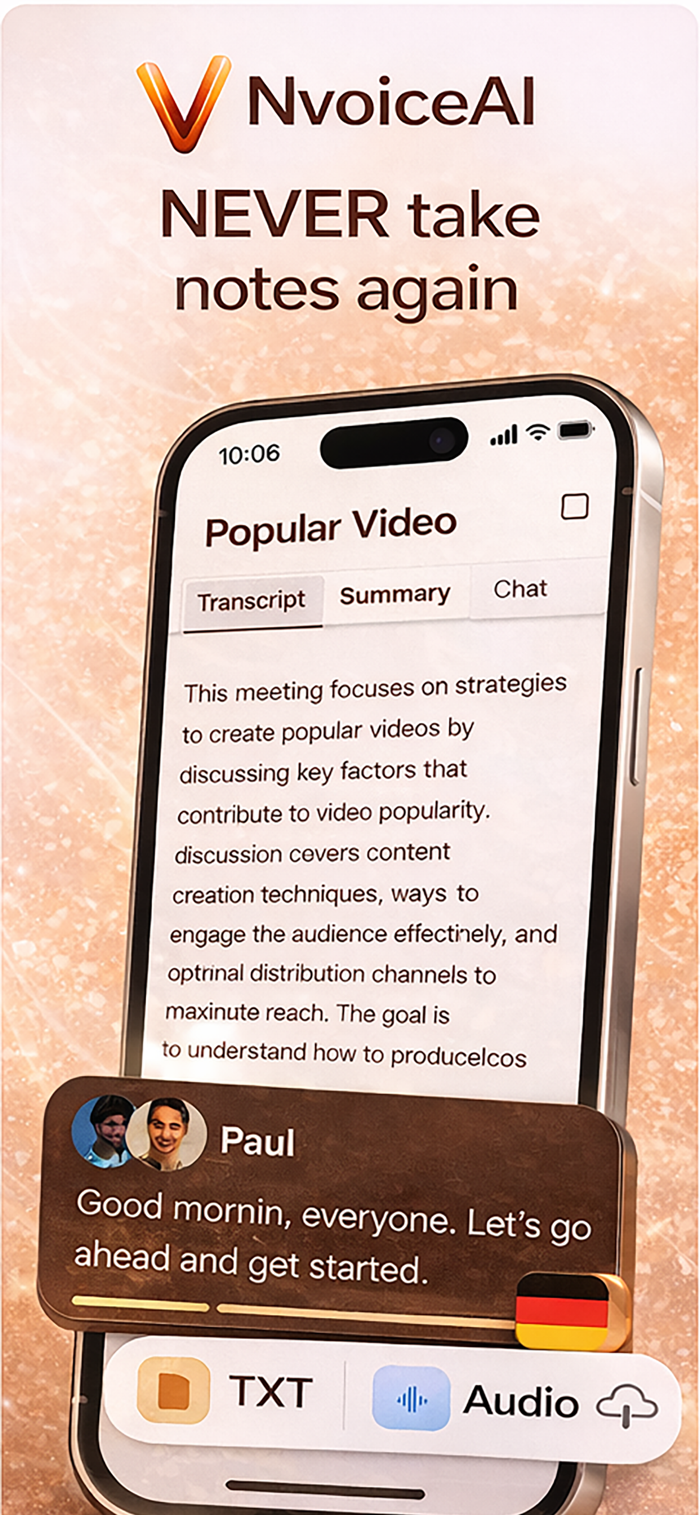 Nvoice is your ultimate AI-powered productivity tool that instantly converts audio, video, and YouTube links into clear, readable text and concise summaries. Whether you are capturing a business meeting, recording a lecture, or trying to digest a long video content quickly, Nvoice handles it all in seconds.
