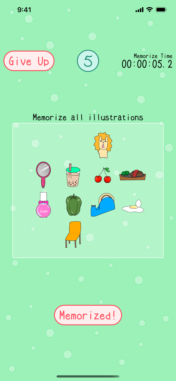 十周年活动推出的短期记忆游戏,可用于智力训练、预防痴呆症以保持和提高记忆力。它通过可爱插图辅助记忆,游戏等级从1级(记忆2幅插图)到10级(记忆20幅插图)还有更多,玩家可测试自己能记住多少插图。