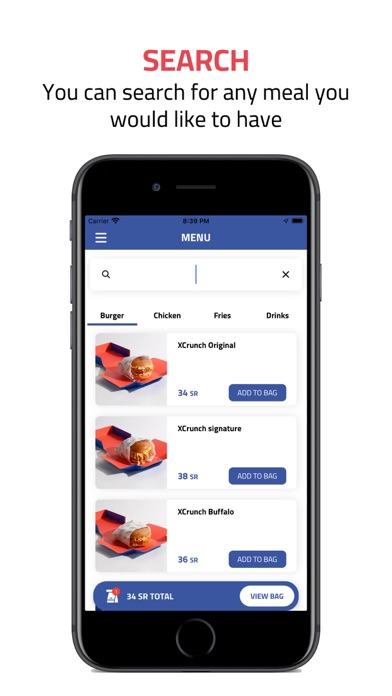 تطبيق مطعم اكس كرنش برجر، يمكن للعميل طلب الطعام اون لاين