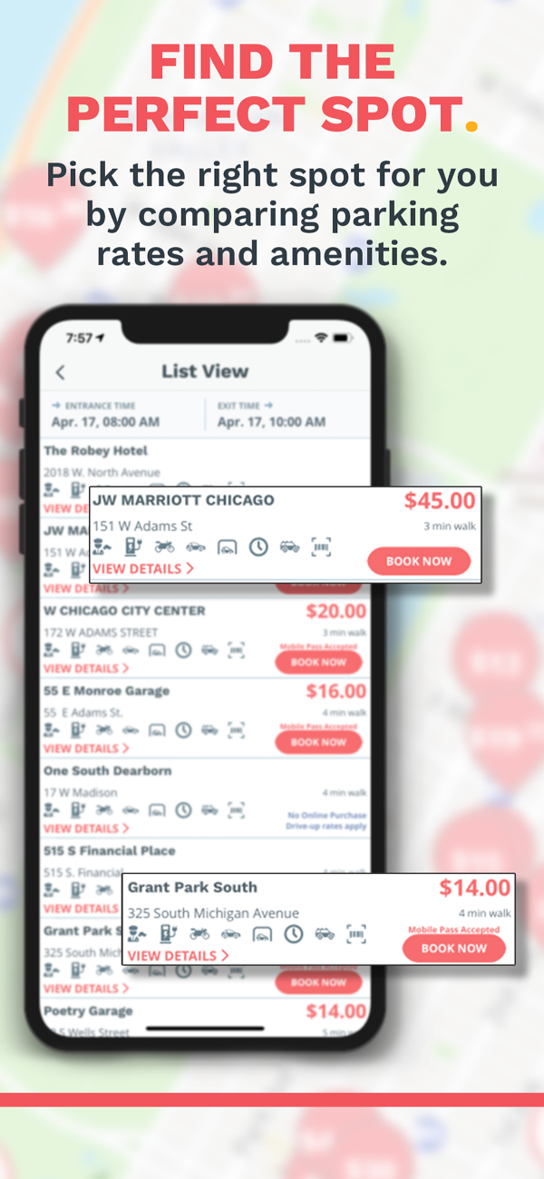 • Compare rates and pick the best parking option near your destination.