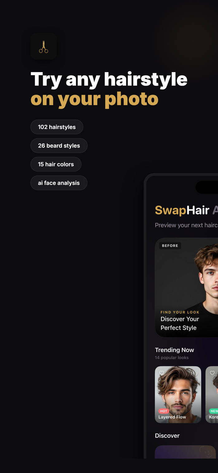 Try 3 styles free. Unlock unlimited with SwapHair Pro.