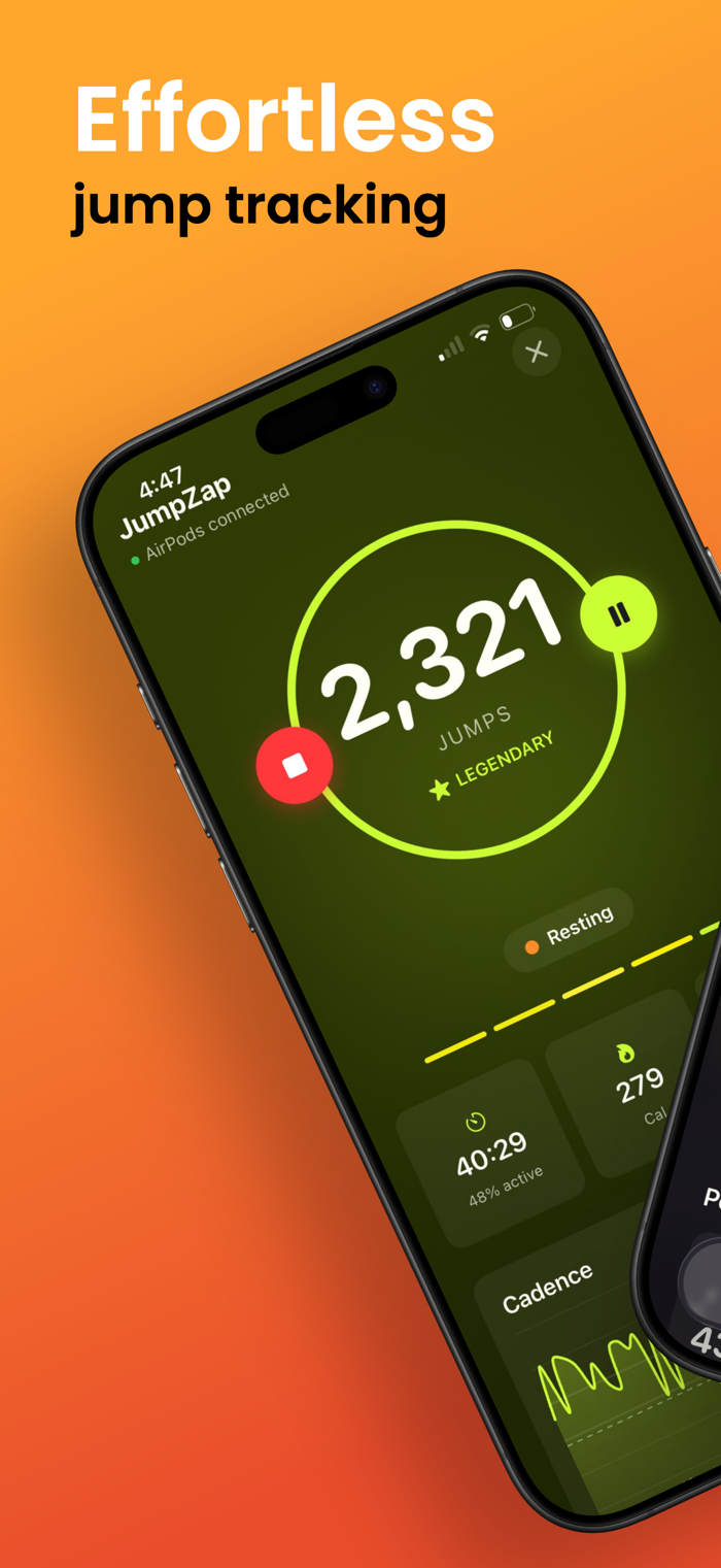 JumpZap automatically tracks jump rope workouts using the motion sensors in your AirPods. No phone in hand. No camera. No extra devices. Just put on your AirPods, start your workout, and jump.