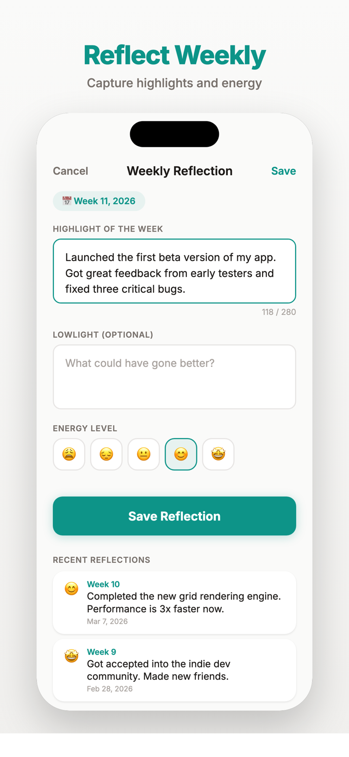 Vitality Weeks turns your roughly 4,680-week life into a visible grid. Open the app to see your age in weeks. At week's end, write reflections, build a private journal. Seal a message to your future self for 52 weeks. Add milestones from 22 icons, set reminders. Also, get weekly notifications to learn from history, helping you mark what matters and remember life's key moments.