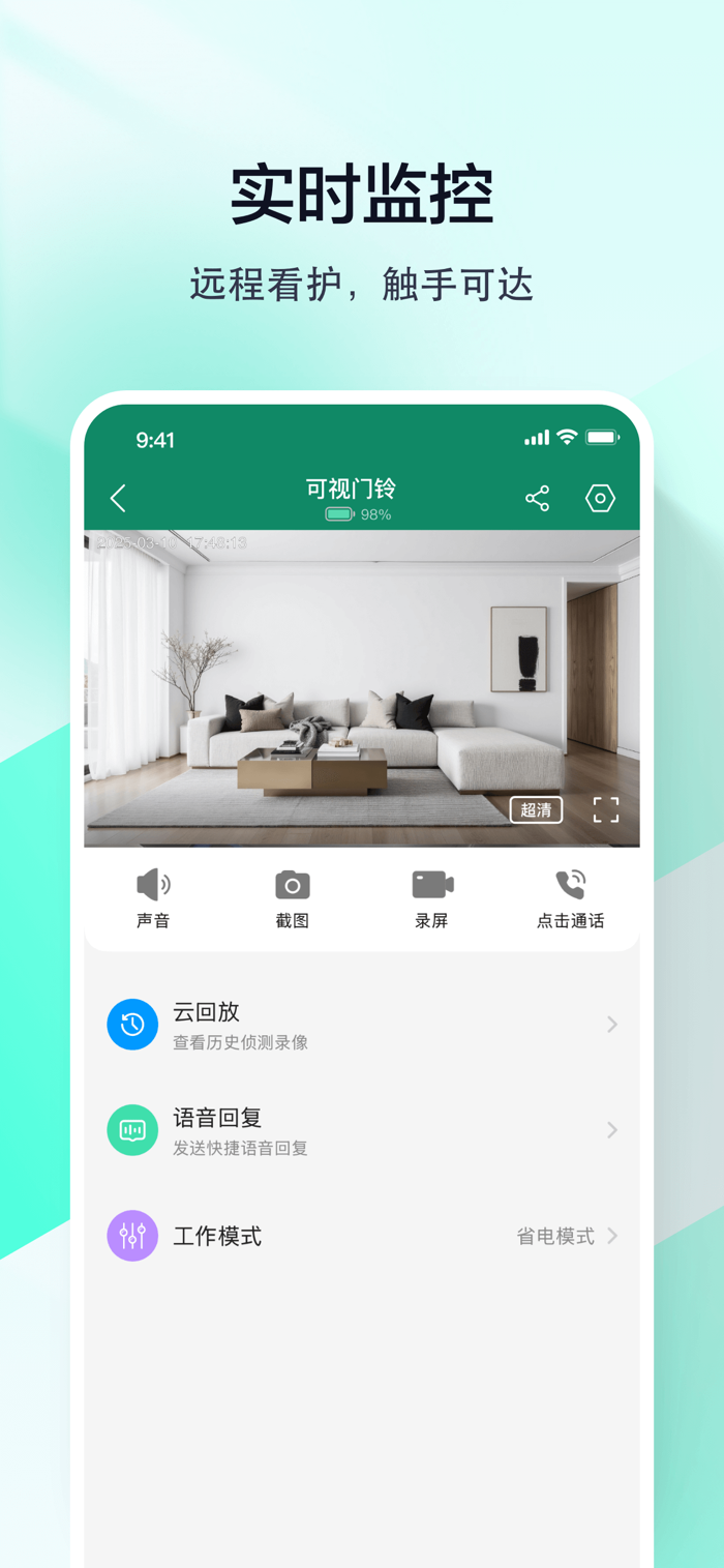 ·看店看家:随时查看家里、商铺、办公室等场所的实时视频,让您轻松管理办公,随时护家安全,实现远程关爱、智能陪伴,分享精彩生活。