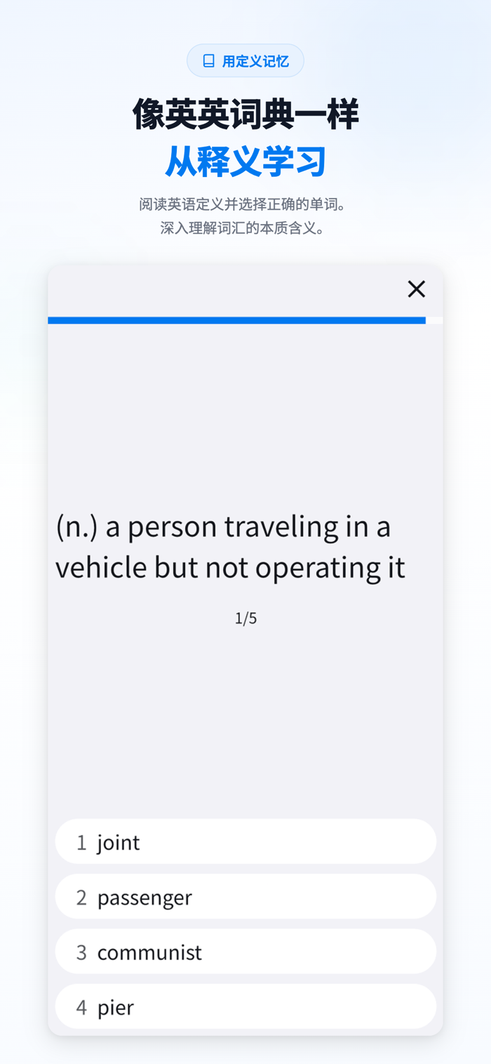 精准记忆系统: 只有当你连续两次回答正确时,该单词才被视为“已学会”。仅回答正确一次的单词将持续出现,直到完全记住为止。