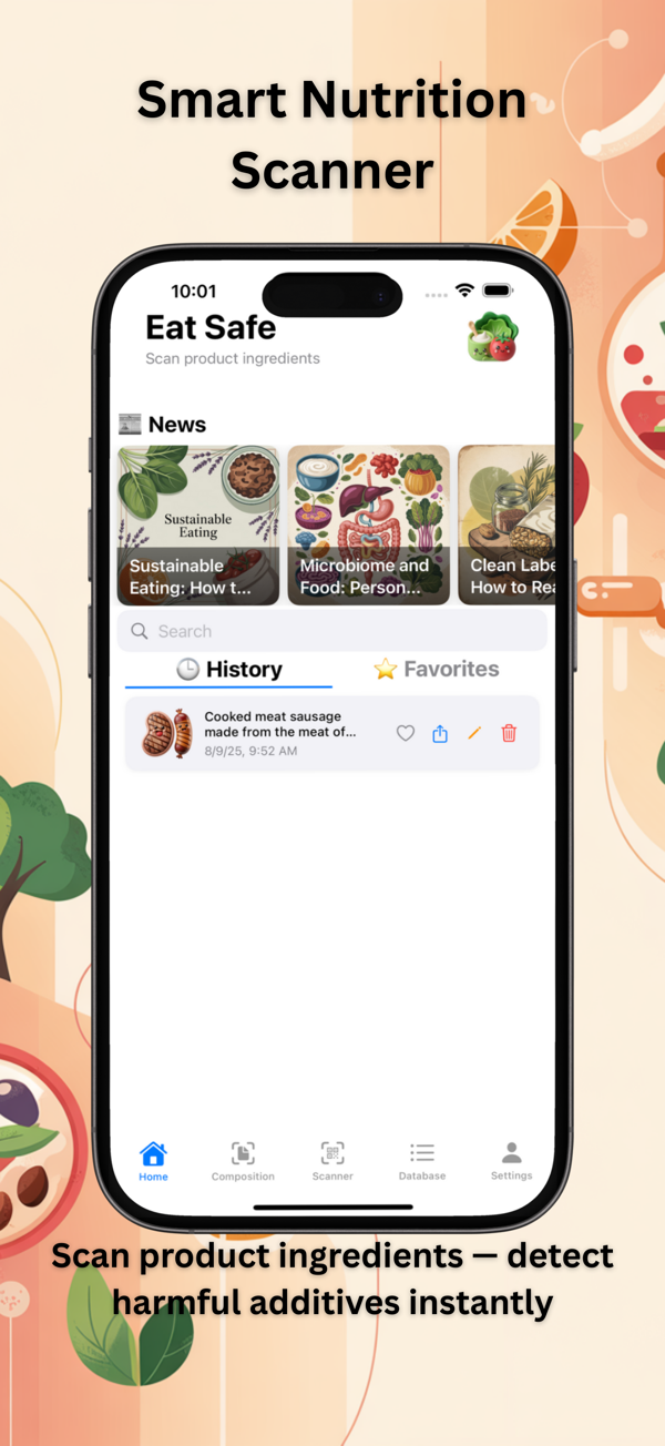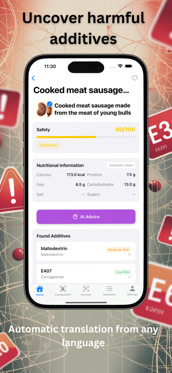 “食品安全”应用程序使用智能人工智能即时解读食品标签。将摄像头对准食品成分或条形码,即可获得通俗易懂的分析结果。主要功能包括:数秒内快速扫描以进行全面分析、深入的添加剂分析(专业版)以及个性化报告(高级版)。订阅可解锁高级功能。隐私至上,无侵扰性广告。
