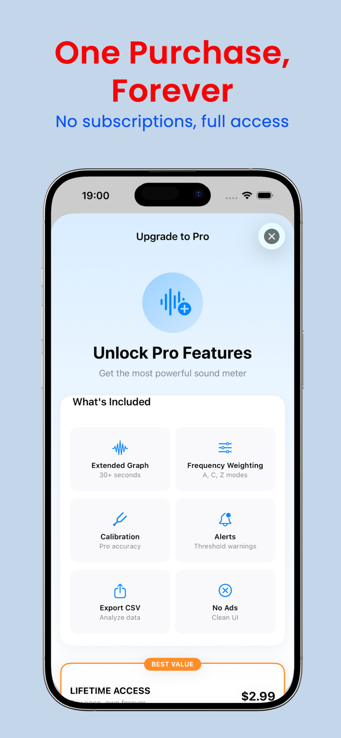 Sound Analyzer - dB Meter是一款专业的声音测量应用,能将iPhone变成精确的分贝仪。可实时测量分贝,有带颜色区域的视觉声级指示器,能跟踪峰值和平均噪声水平,界面简洁直观。适用于检查家中或工作场所噪音水平、监测音乐会和活动声音、确保安全聆听环境及教育用途。专业版功能包括扩展图表和历史记录、频率加权、校准工具、自定义警报、CSV导出及无广告体验。