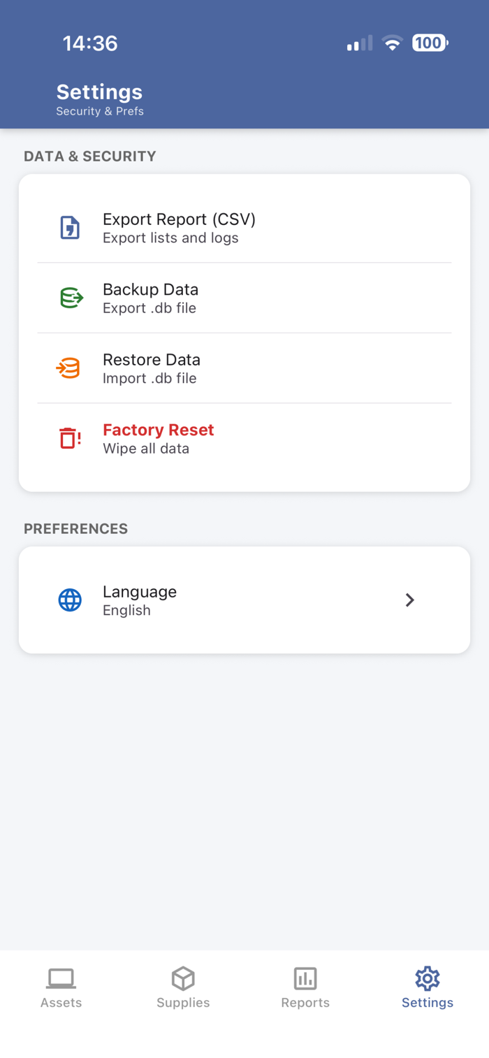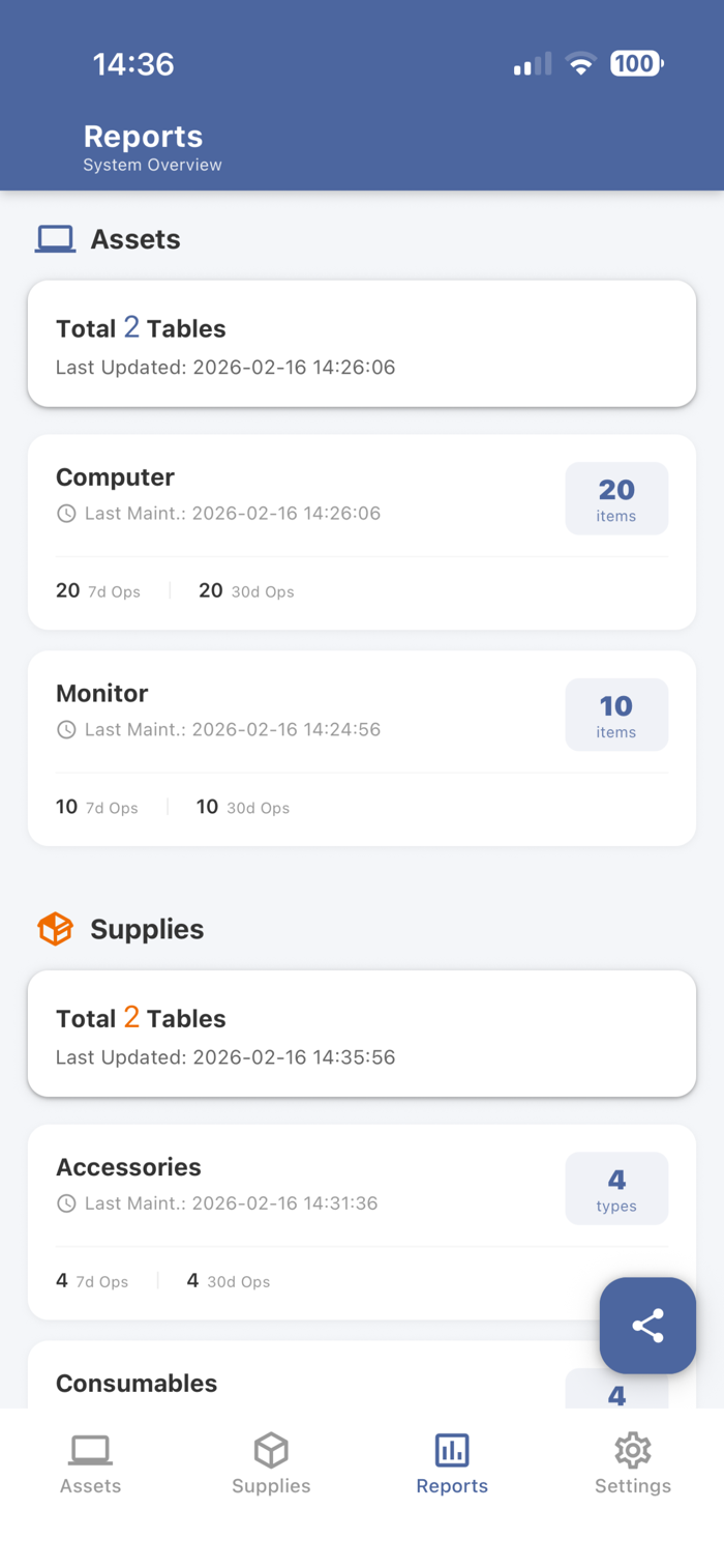 Excel 导出:支持一键将完整的资产列表和库存记录导出为 Excel 文件,方便进行月度汇报或二次编辑。