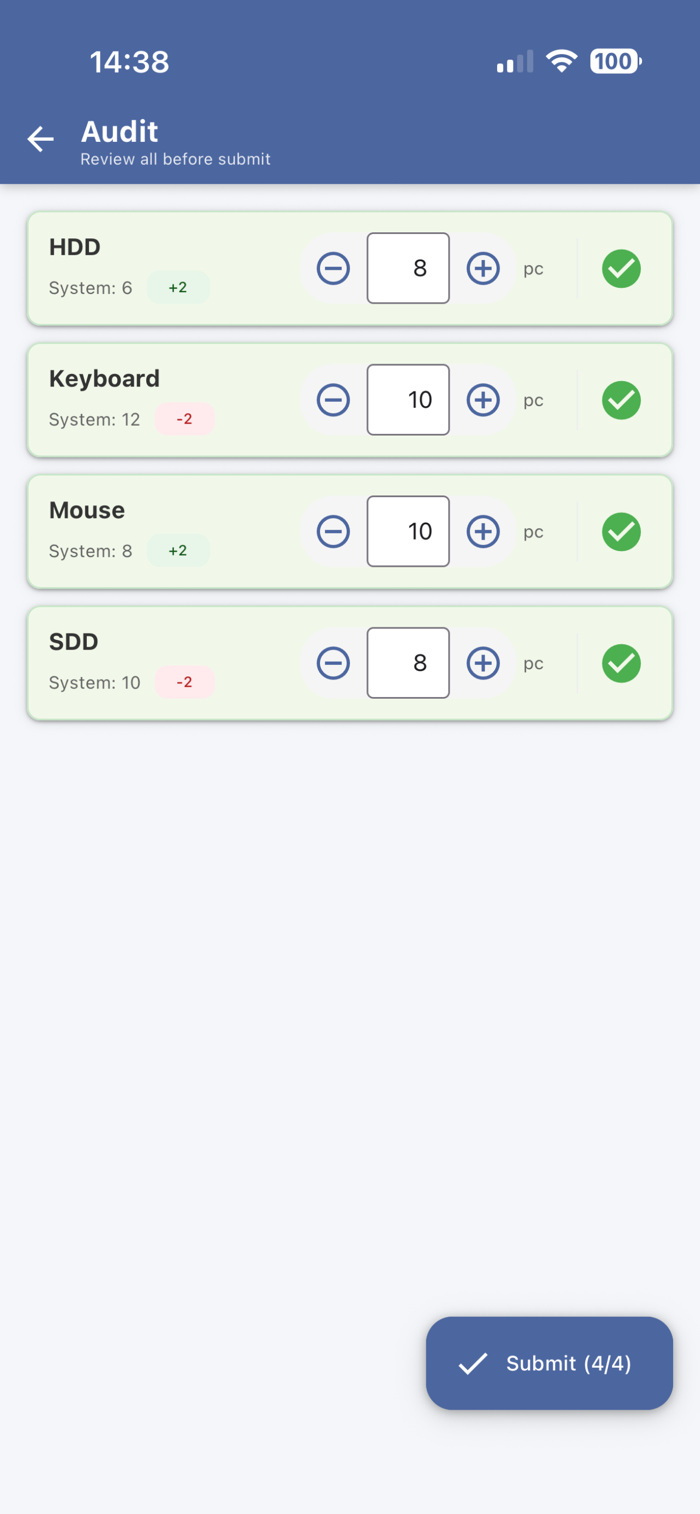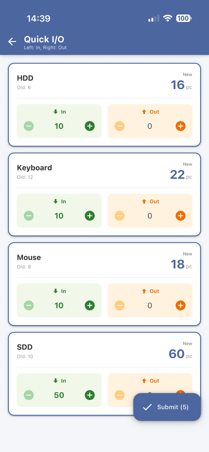 专为无条码环境设计。通过直观的卡片列表和快速加减按钮,您可以比对准条码扫描更快地完成日常出入库操作。界面清爽,无复杂的菜单跳转,新手也能在 1 分钟内上手。