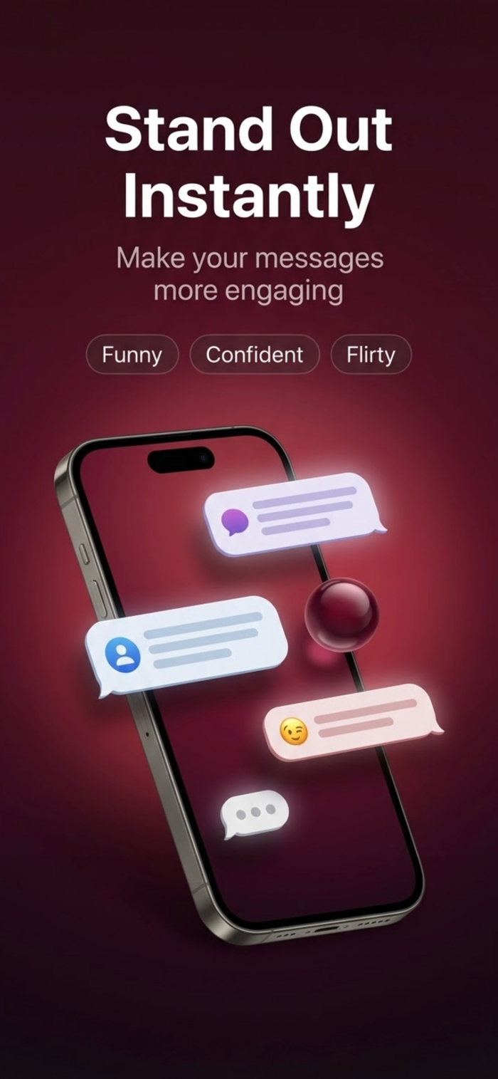 从5种消息风格(俏皮、有趣、破冰、浪漫、大胆)中选择,获得针对任何情况量身定制的人工智能精心打造的开场白。添加有关你正在给谁发消息的背景信息,以获得更个性化的结果。