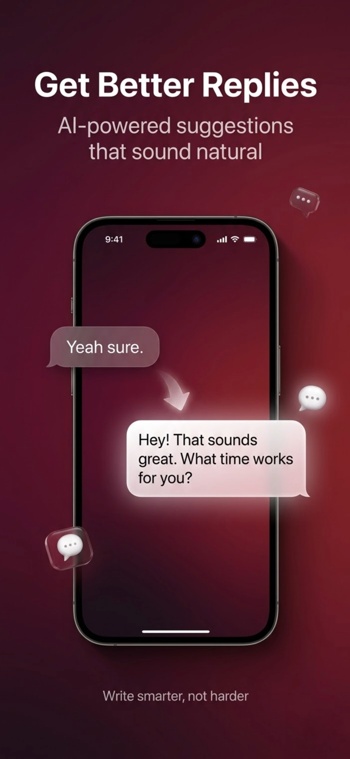 聊天聊到一半卡住了?粘贴他们说的话,立即获得智能、自然的回复。再也不会无话可说了。