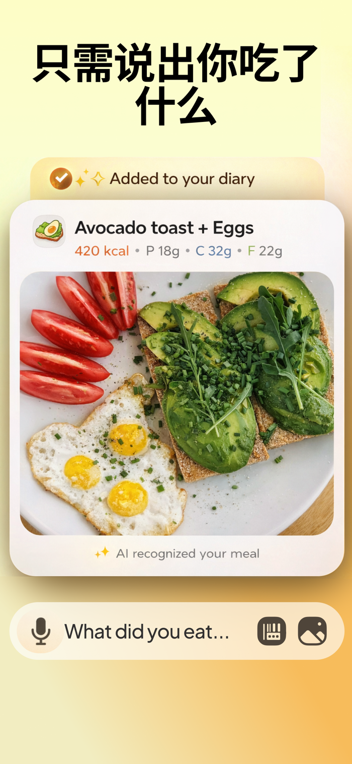 就像和一位贴心的朋友分享你的饮食一样简单。无需表格,没有烦恼——只有轻松与支持。