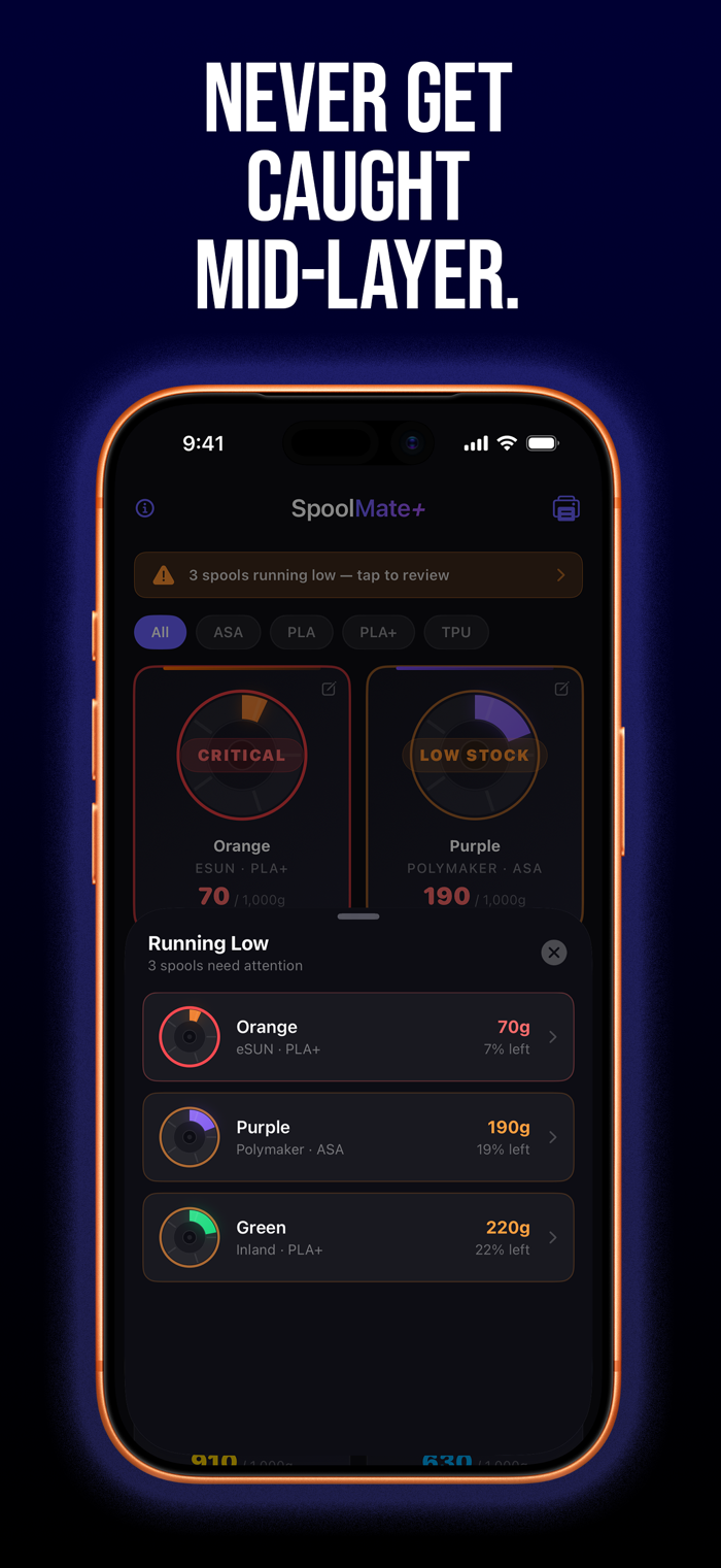 Never get caught mid-layer with an empty spool again.