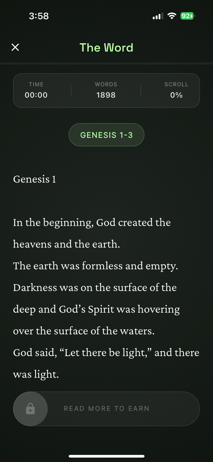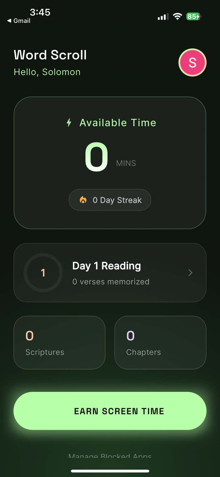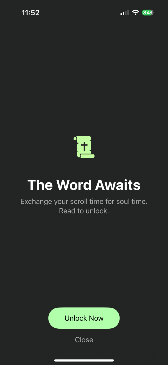 Word Scroll helps you redeem your time by turning screen time into Scripture time.