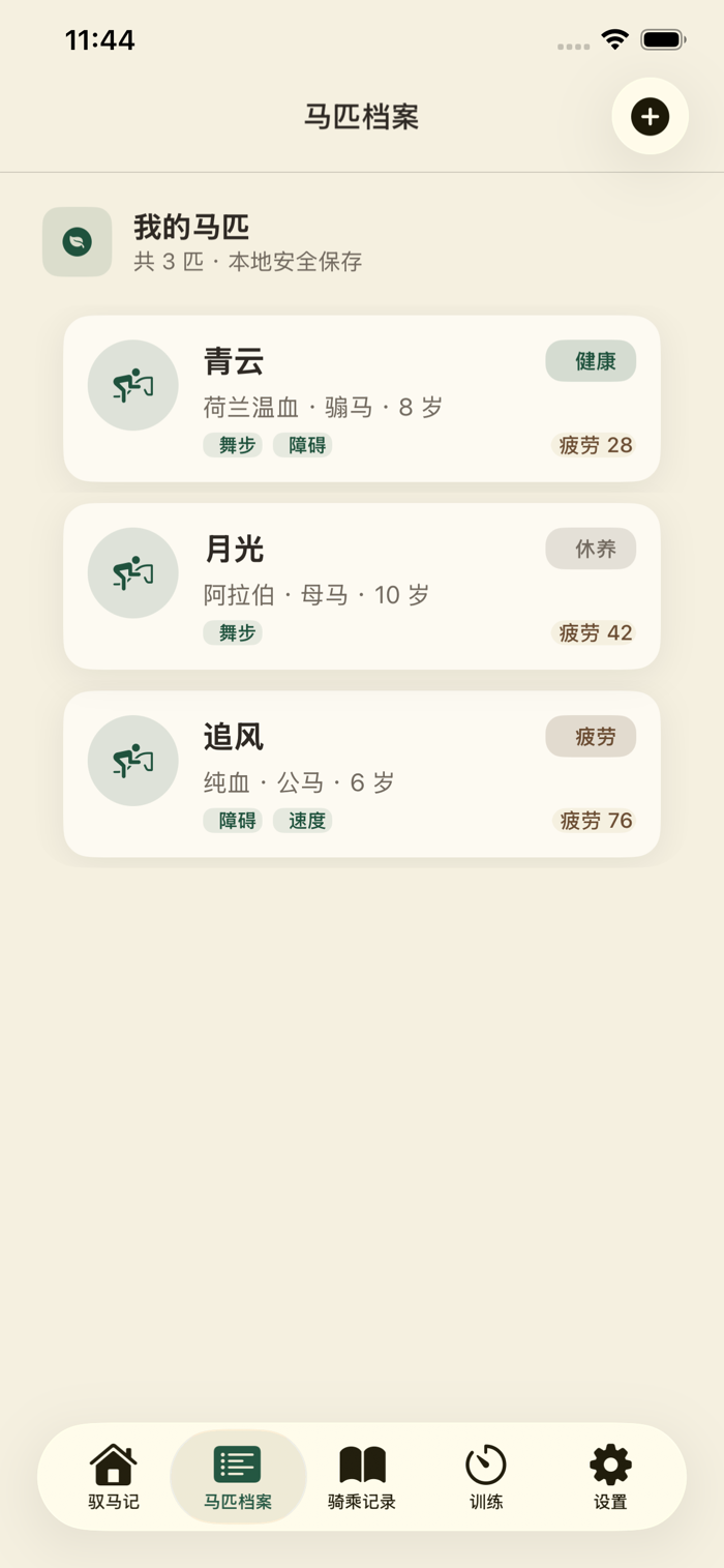 不采集网络数据、不依赖服务器,你的马匹与训练记录只属于你自己。