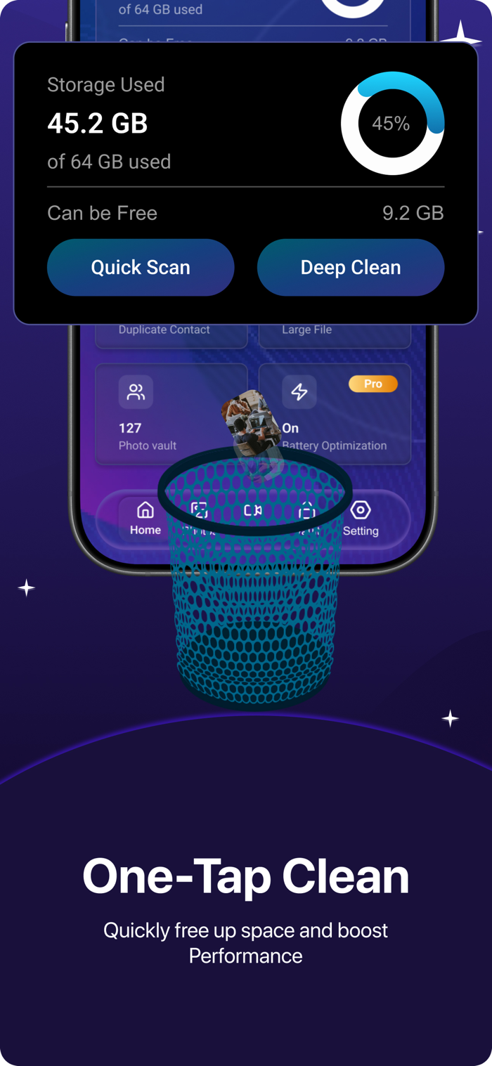 Running low on space? Snap Clean makes it easy to free up storage, organize your photos and videos, and keep your device running smoothly—all without deleting your favorite memories.
